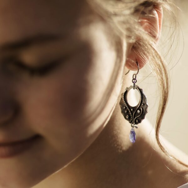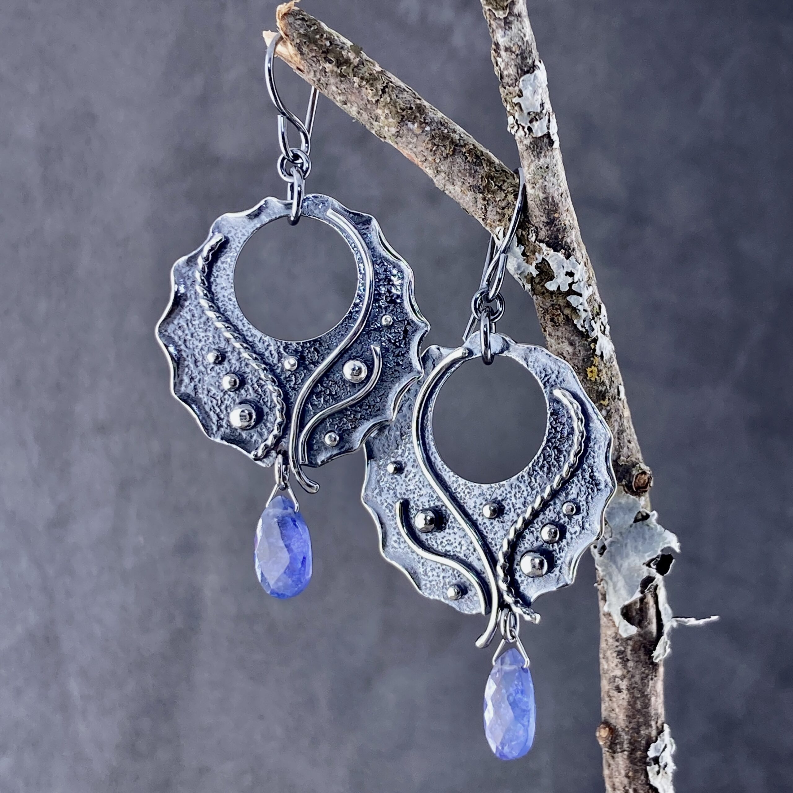 tanzanite earrings - hollow circle waves - Argentium silver - Image 3