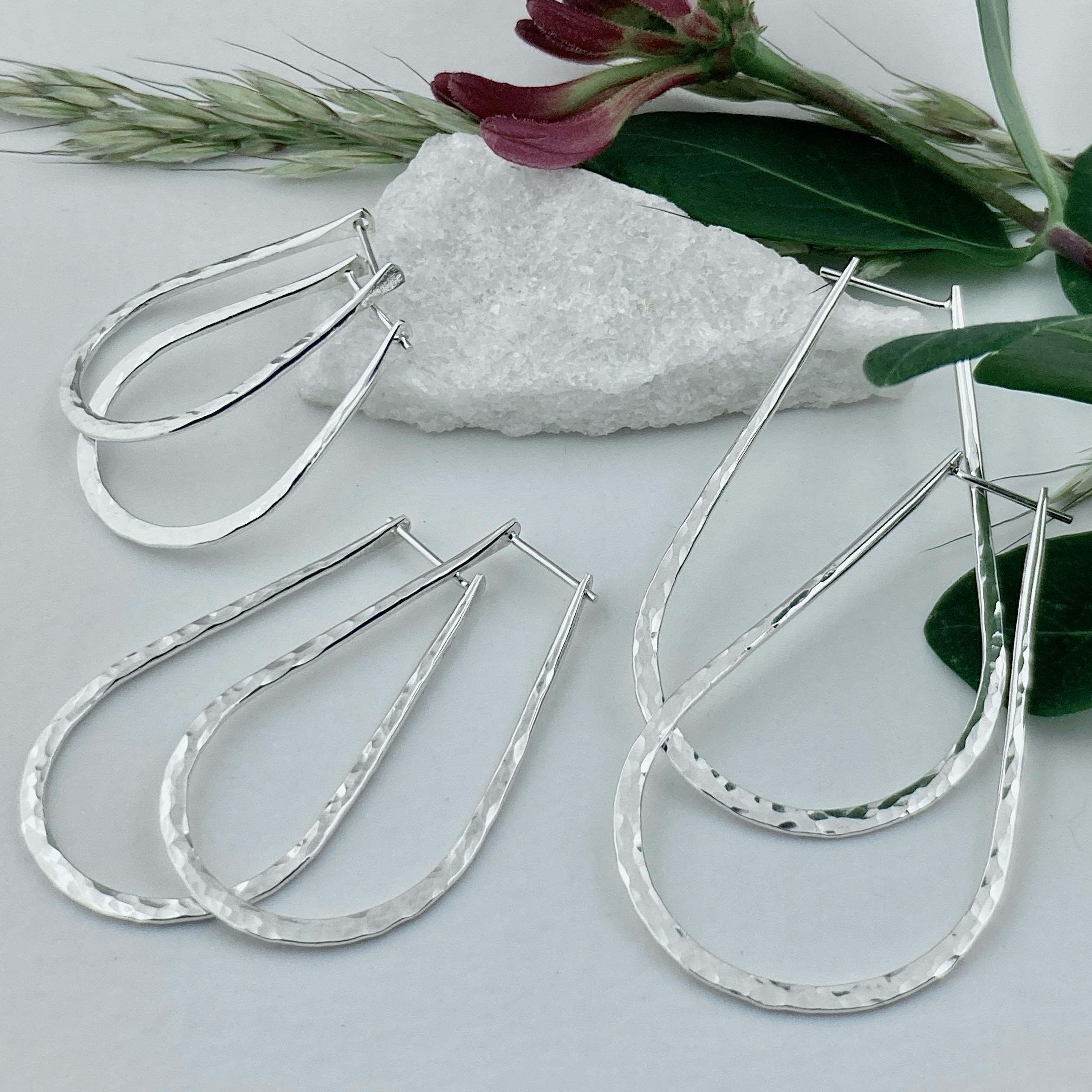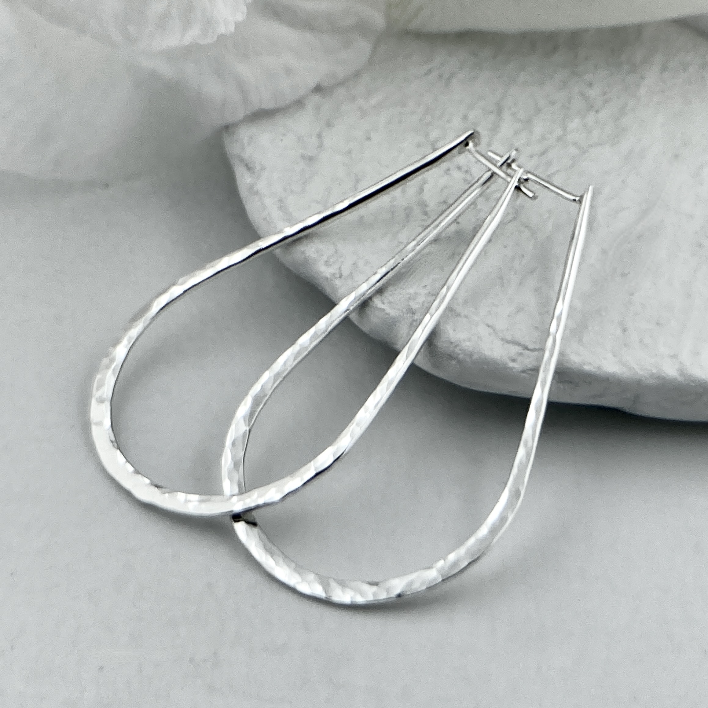 These are the LARGEST of the teardrop shaped hoop earrings at 5 cm long x 3.0 cm wide.