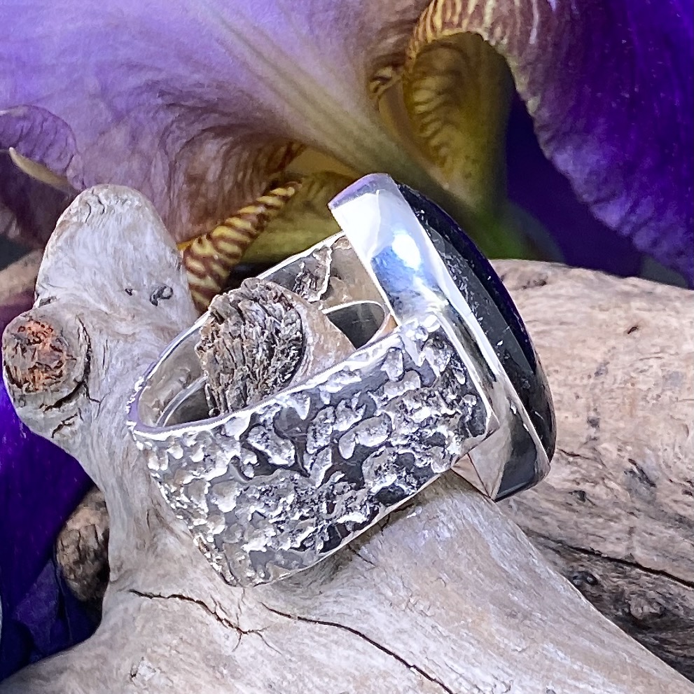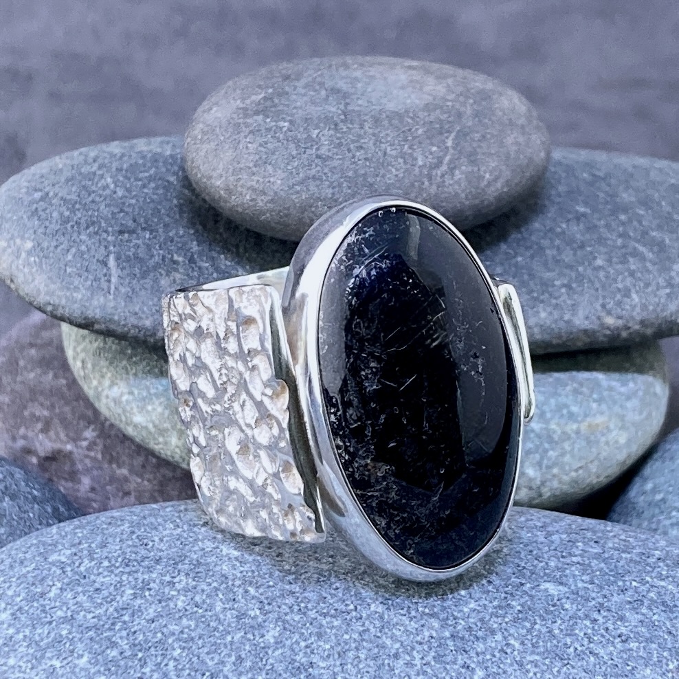 I begin with Argentium sheet and wire, melting and fusing each part by hand. Because no solder is used, the metal keeps its purity and strength. The bezel is shaped exactly to the gemstone for a secure, lasting fit. The finished ring carries the calm energy of the moon — bright, solid, and timeless.