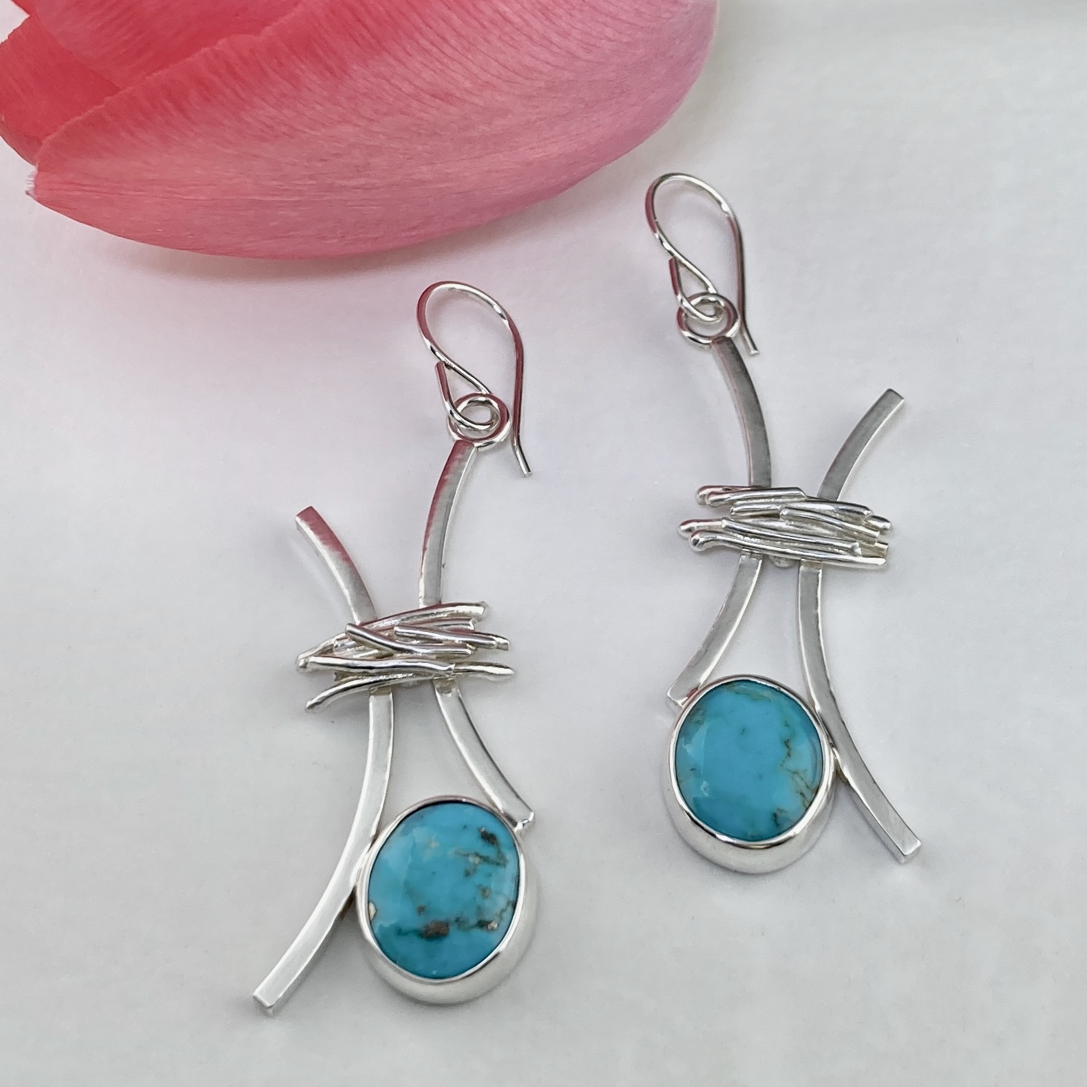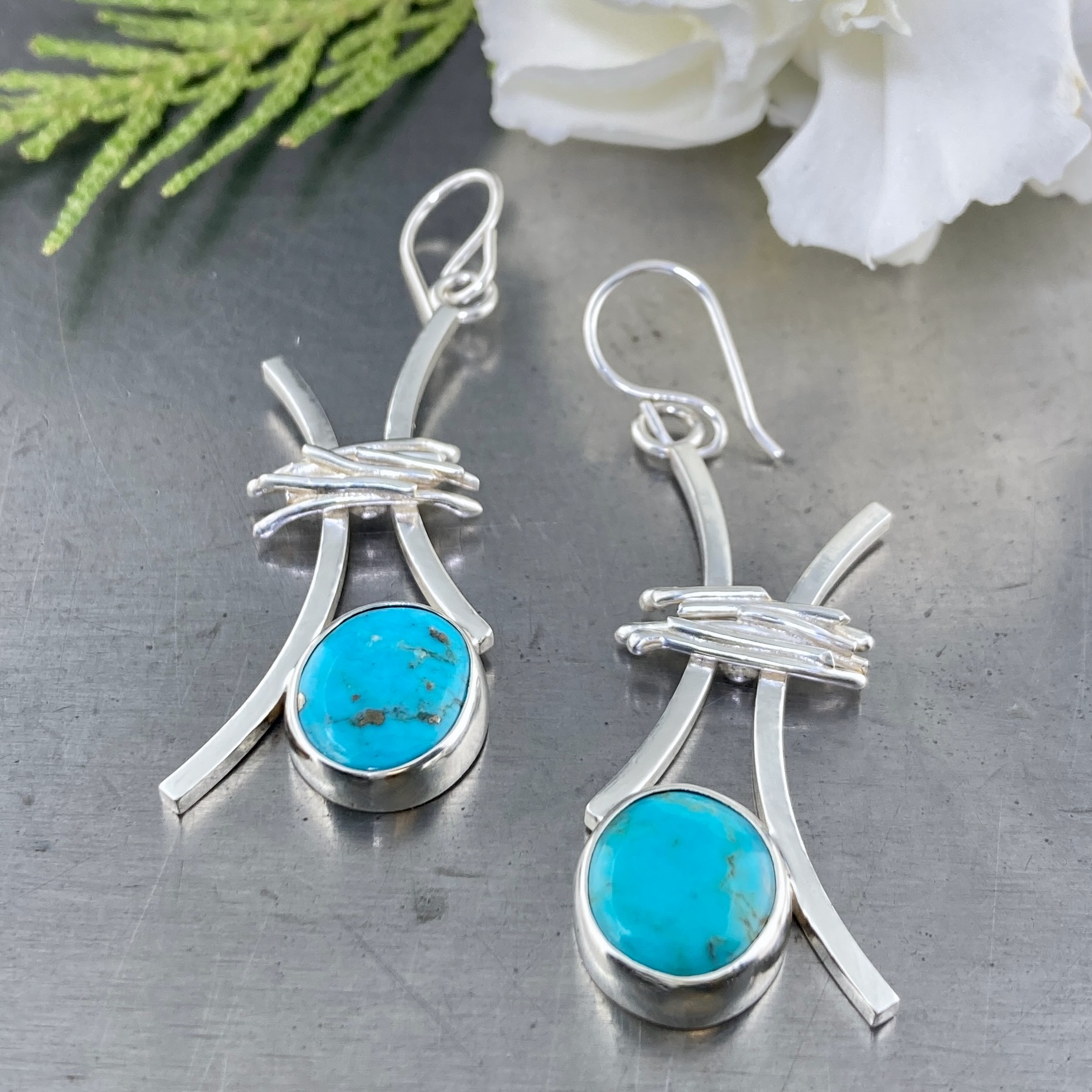 Earrings are 5.9 cm long by 1.9 cm wide. They weigh 9.1 grams.