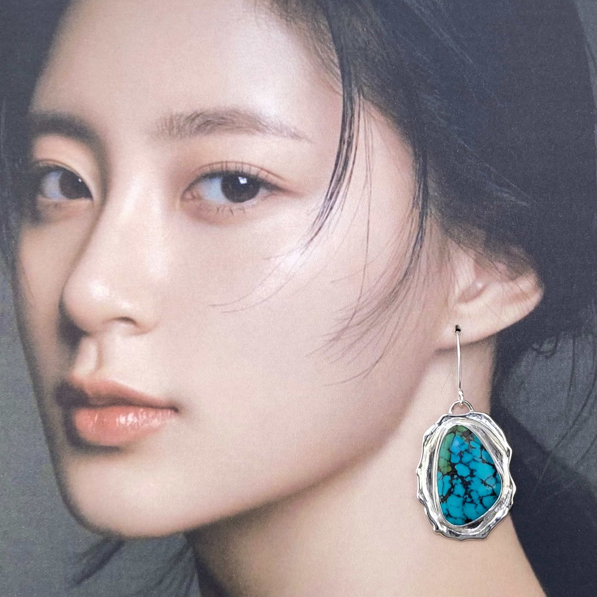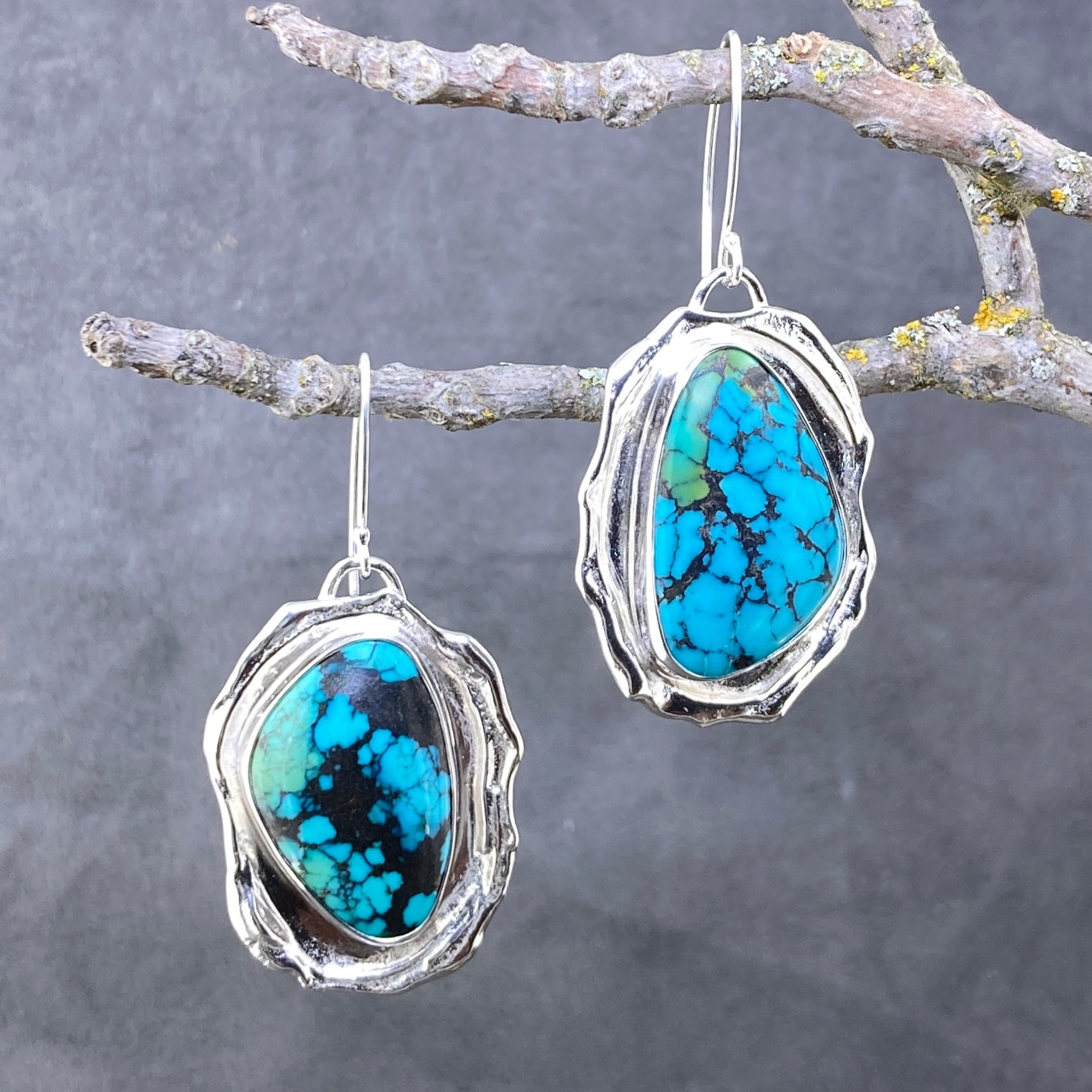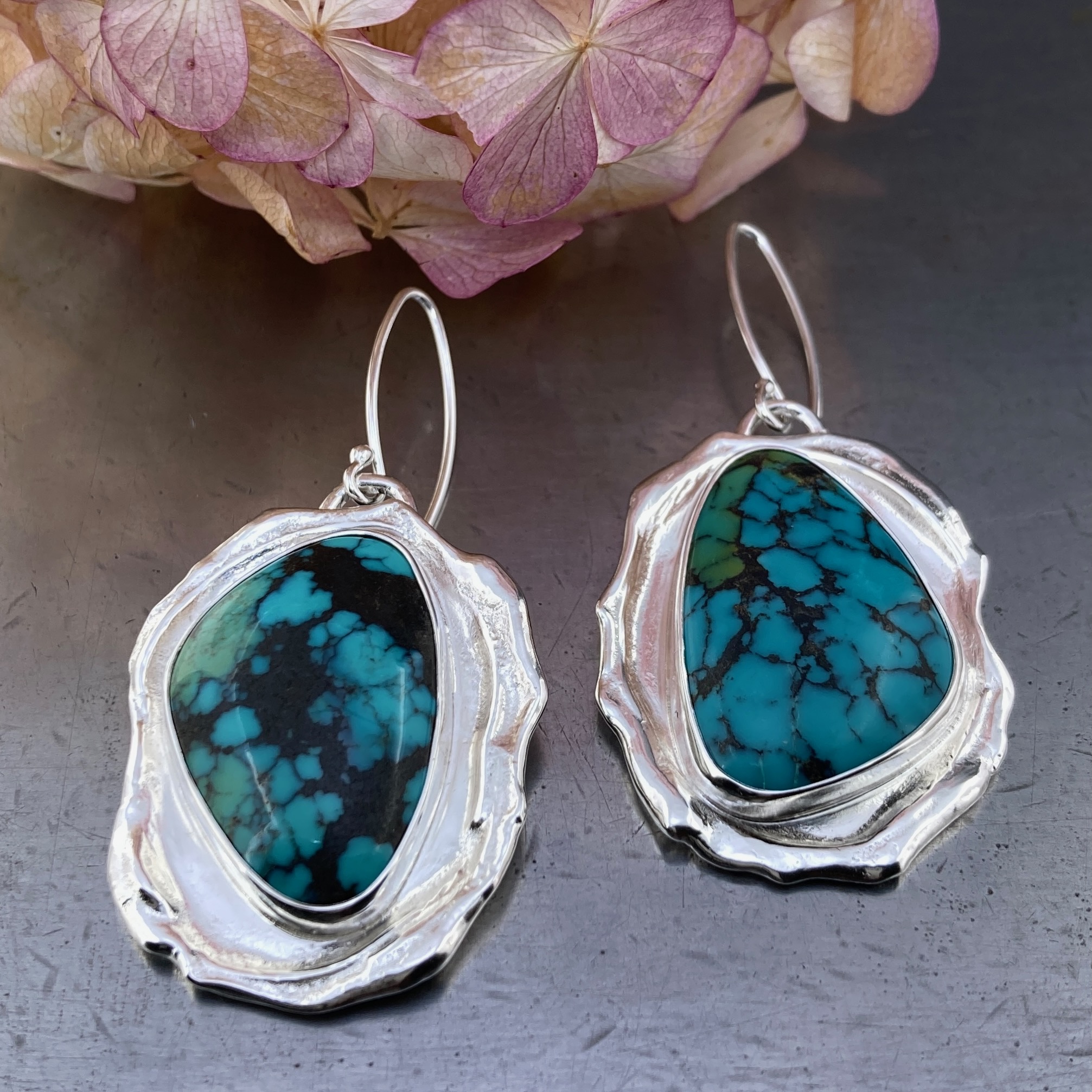 turquoise earrings – wax seal – Argentium silver