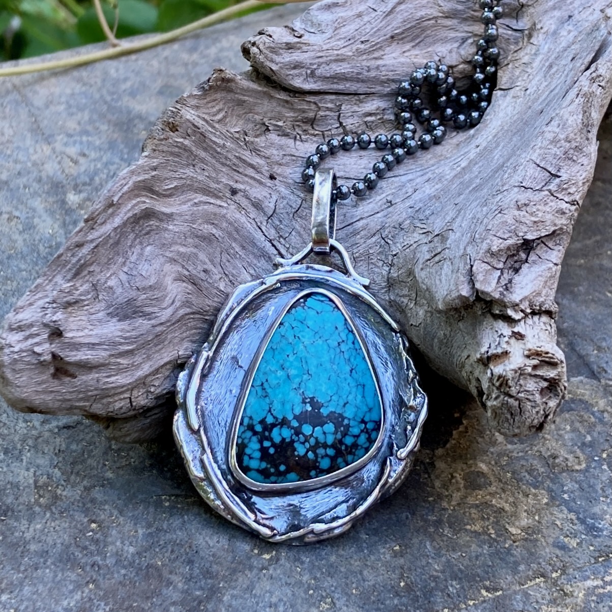 turquoise pendant – Argentium silver wax seal – antique
