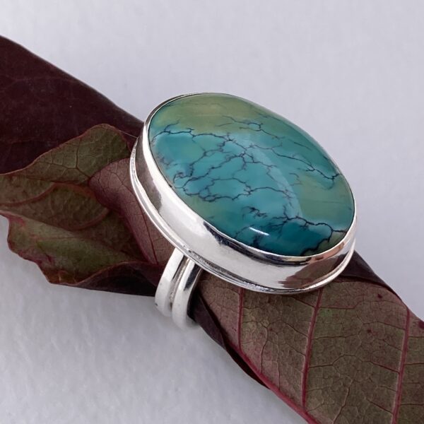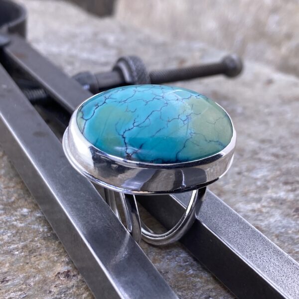 Turquoise Ring – Size 7 – Argentium Silver Split Double-Band - Image 4