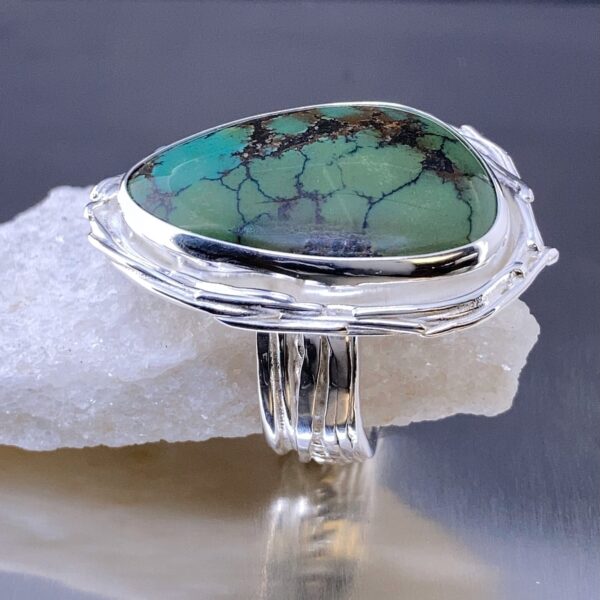 turquoise ring - size 8.5 - Argentium silver twigs band - Image 4