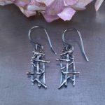 Earrings are 3.3 cm long by 1.2 cm wide. They weigh 2.6 grams.