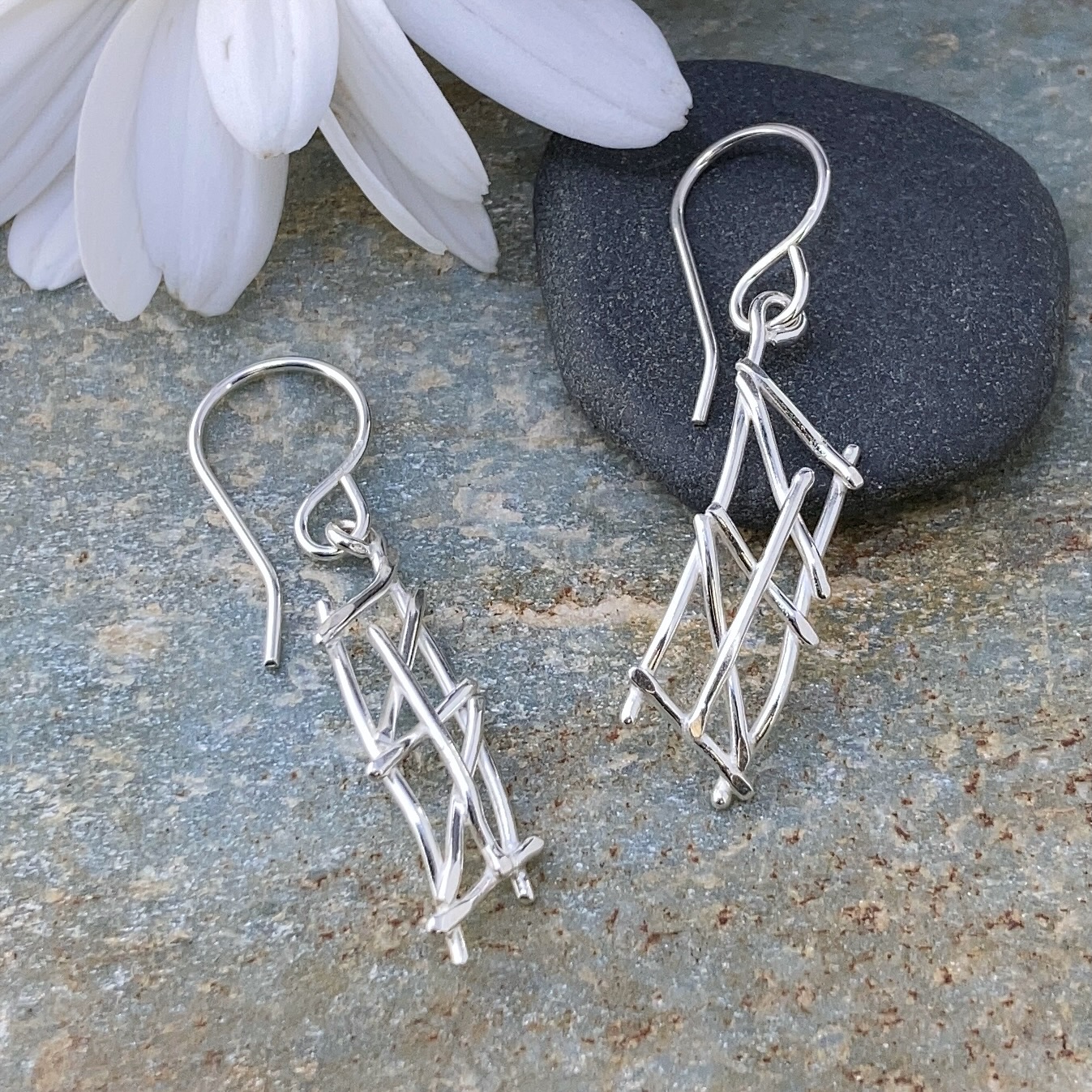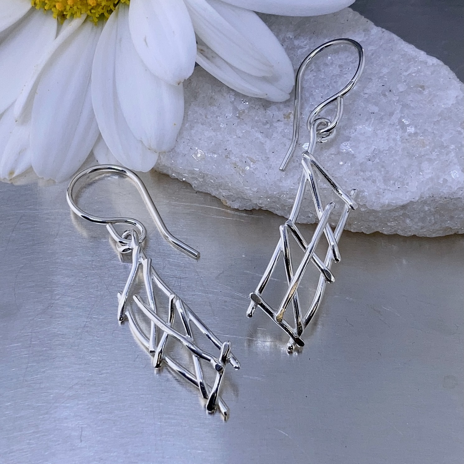 Argentium silver pile of little silver ‘twigs’ – fused and dapped and polished. These light weight earrings have a loose pile of silver ‘twigs’ with very little weight. Perfect for an everyday earring.