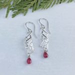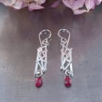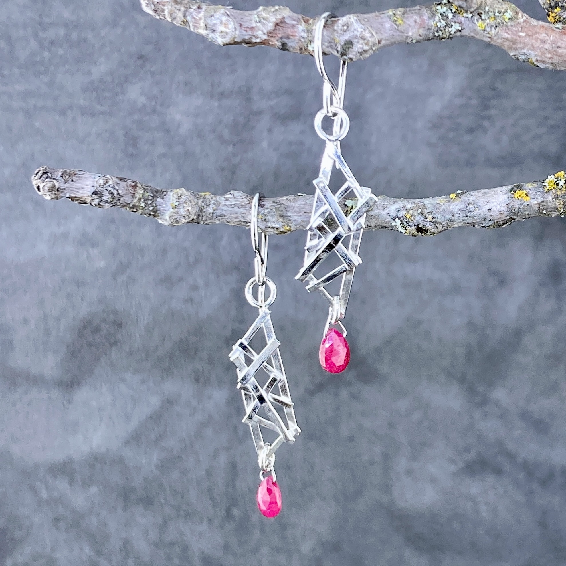 Argentium silver twigs laid in a delicate pile and fused to make a permanent little twig design.  These earrings have a Ruby teardrop feature.