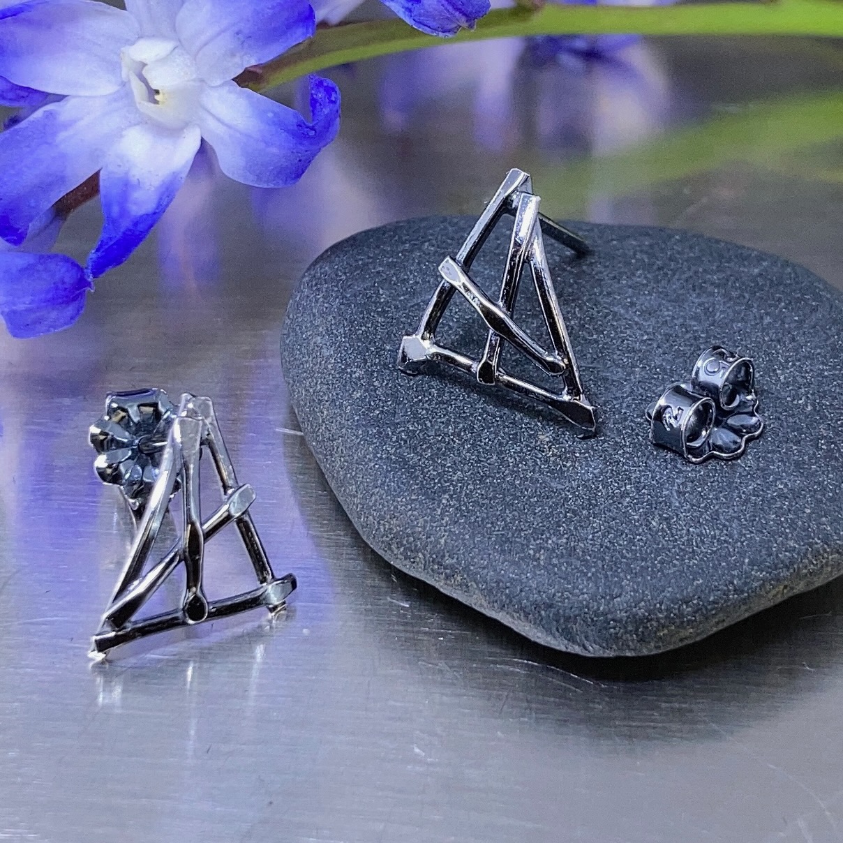 twig earrings – triangle posts – antique
