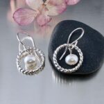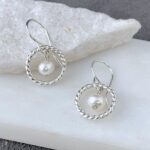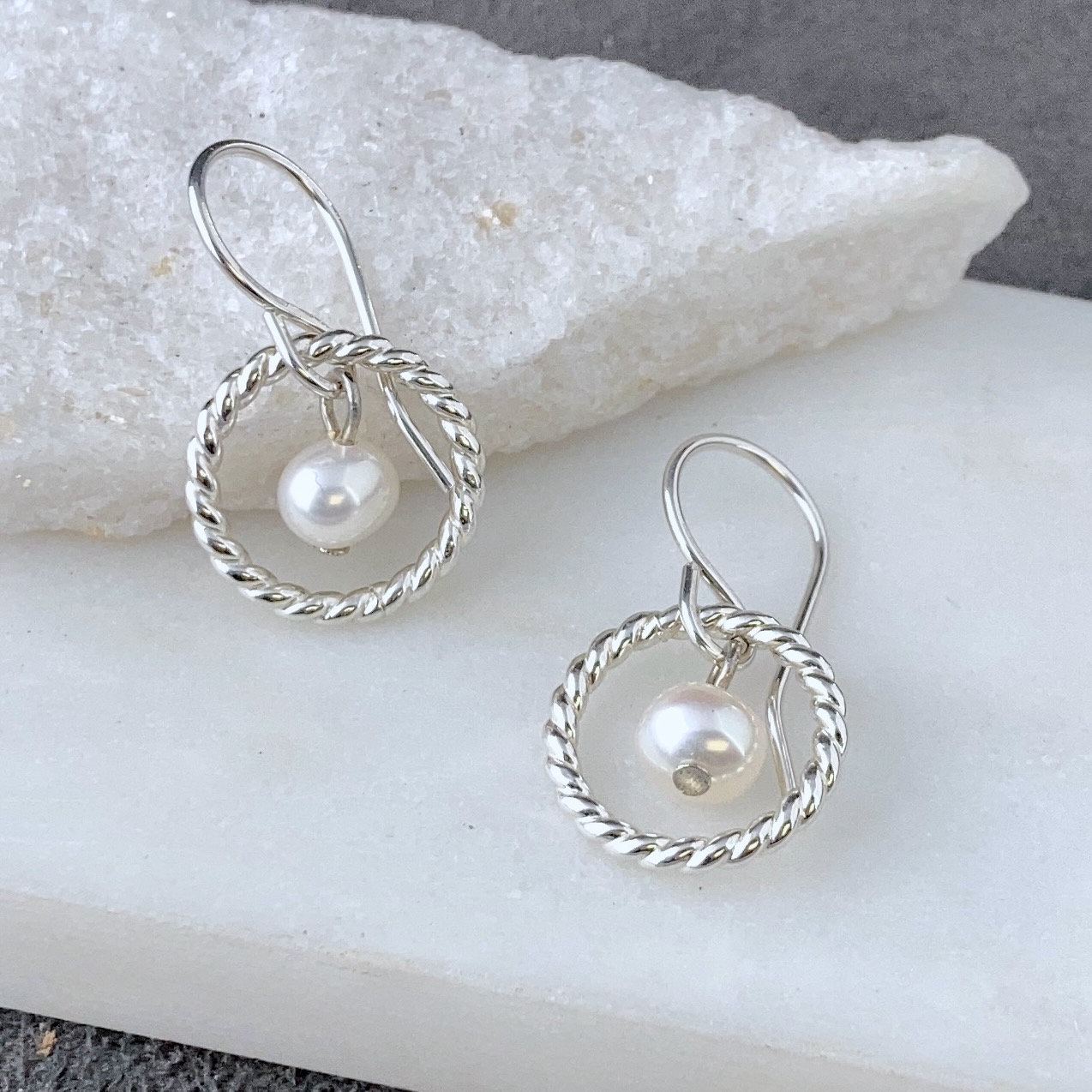 twist ring earrings with white pearl