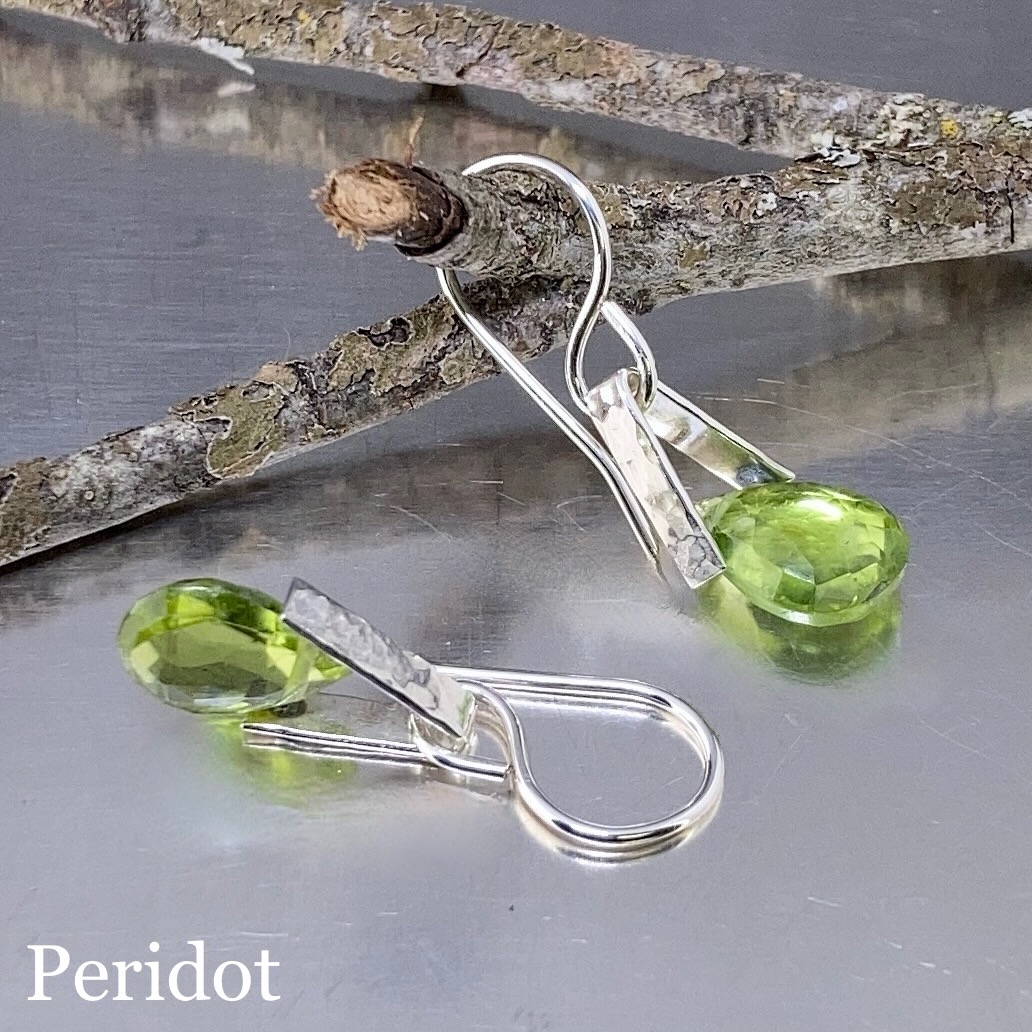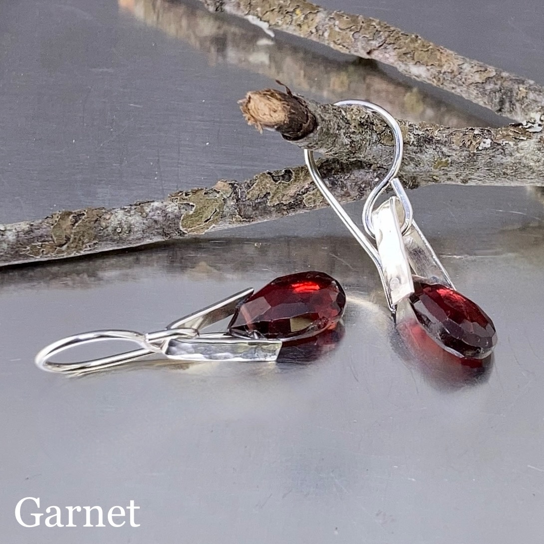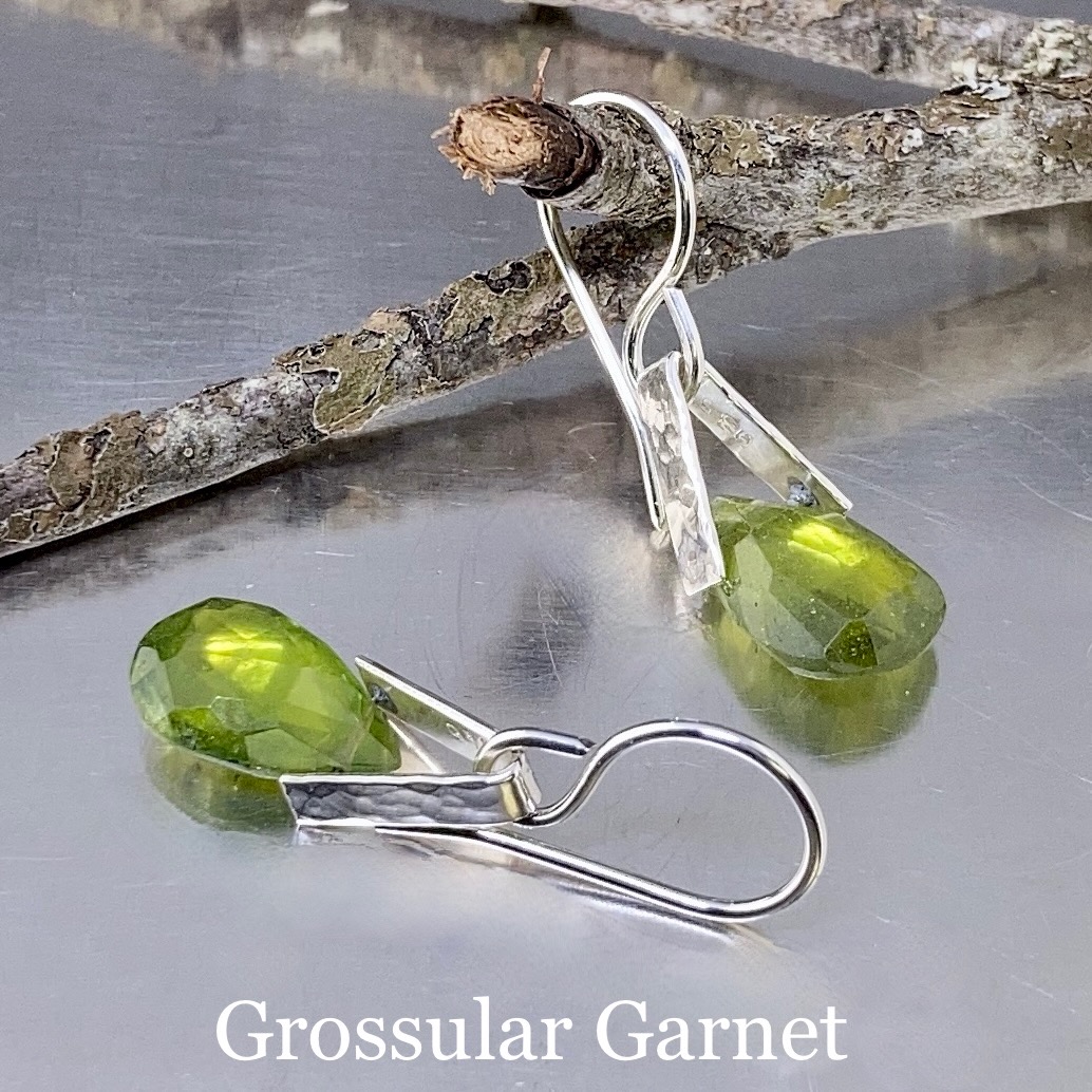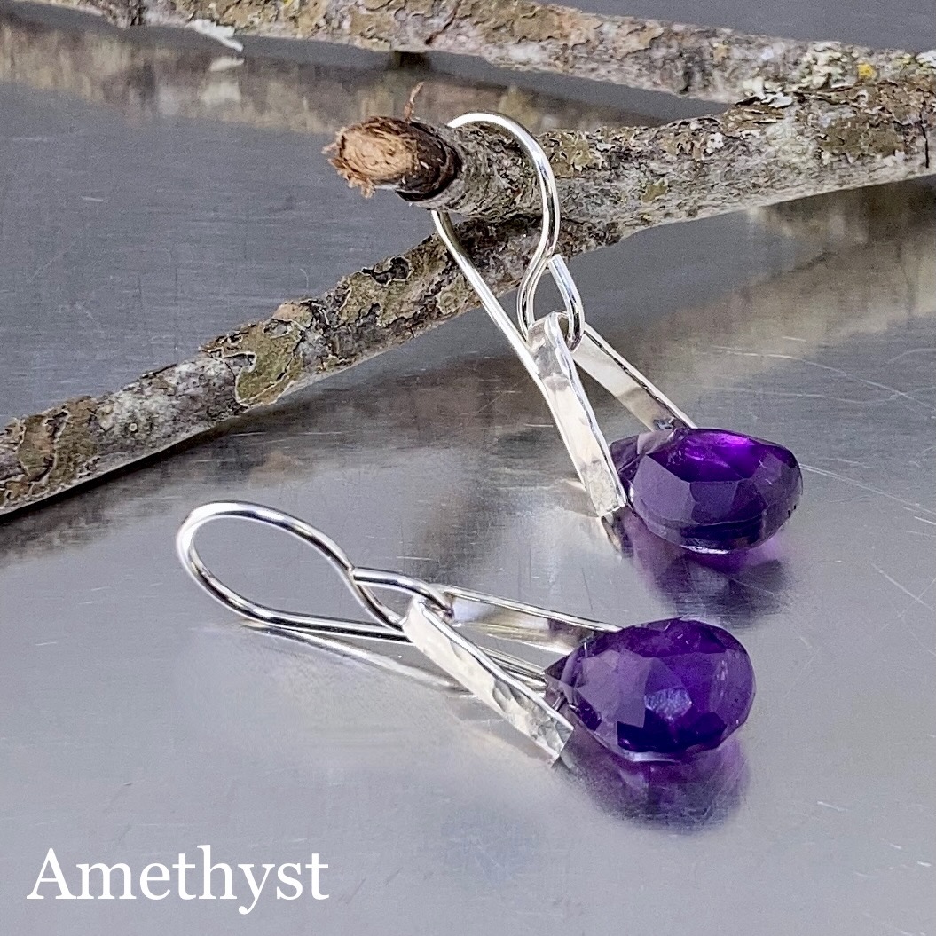 Natural gemstone teardrops on a hand hammered V bail. These earrings have the short Argentium silver earwires. A really nice variety of gemstones.