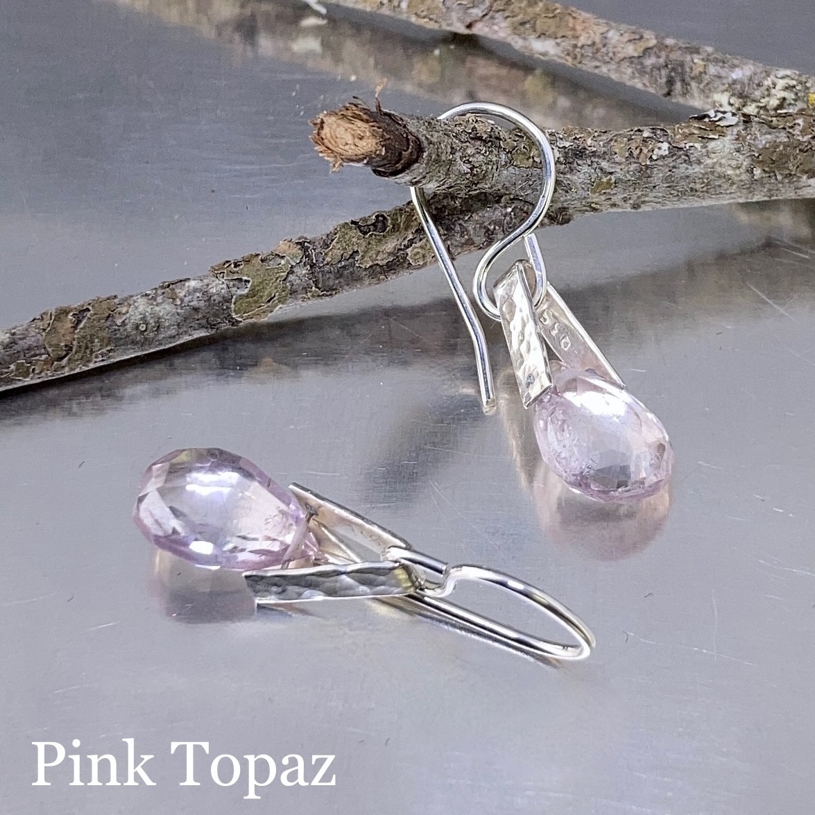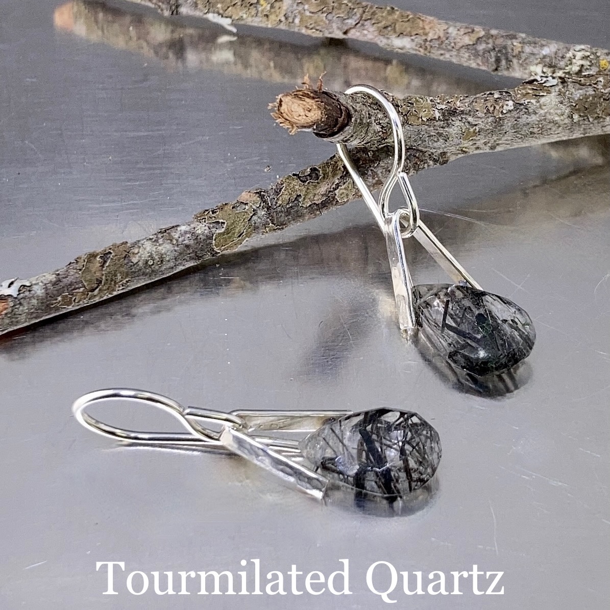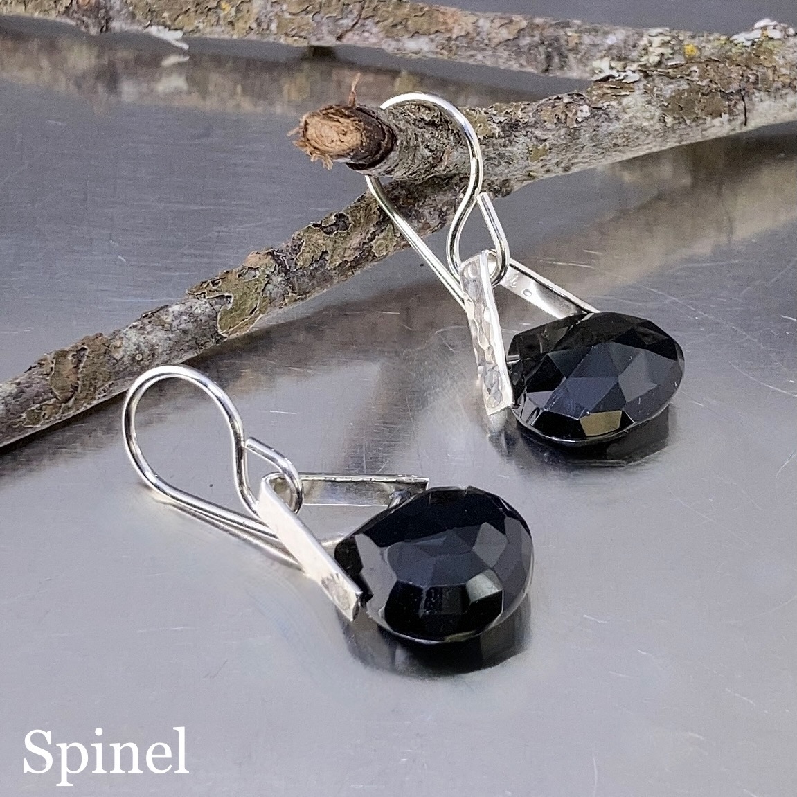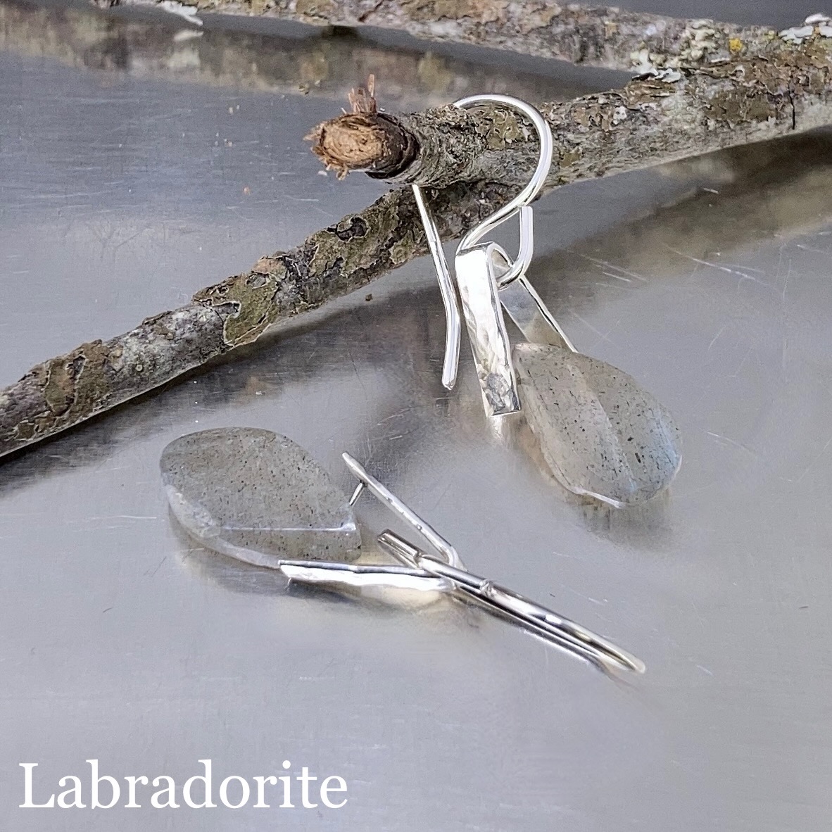 Natural gemstone teardrops on a hand hammered V bail. These earrings have the short Argentium silver earwires. A really nice variety of gemstones.