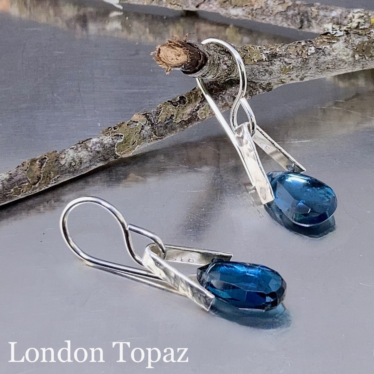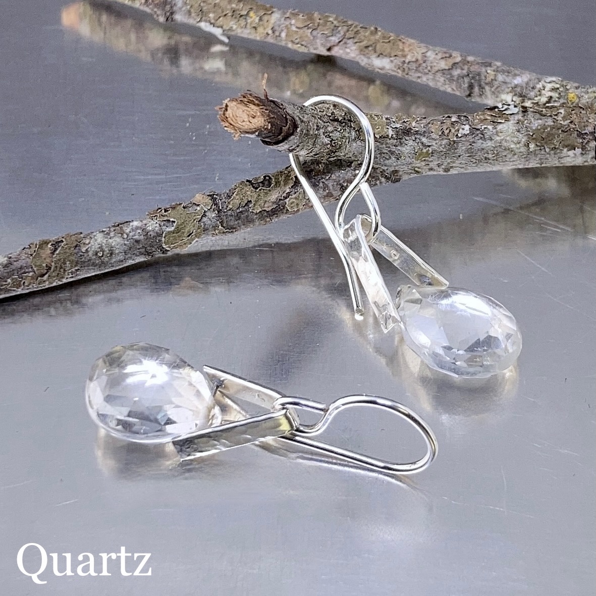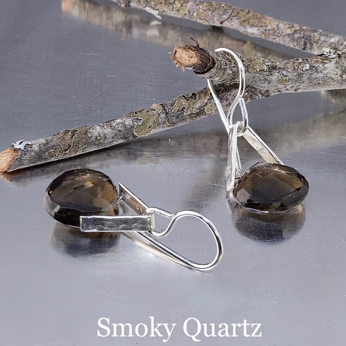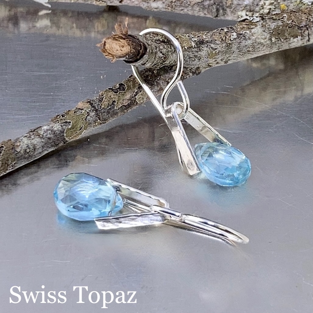 Natural gemstone teardrops on a hand hammered V bail. These earrings have the short Argentium silver earwires. A really nice variety of gemstones.