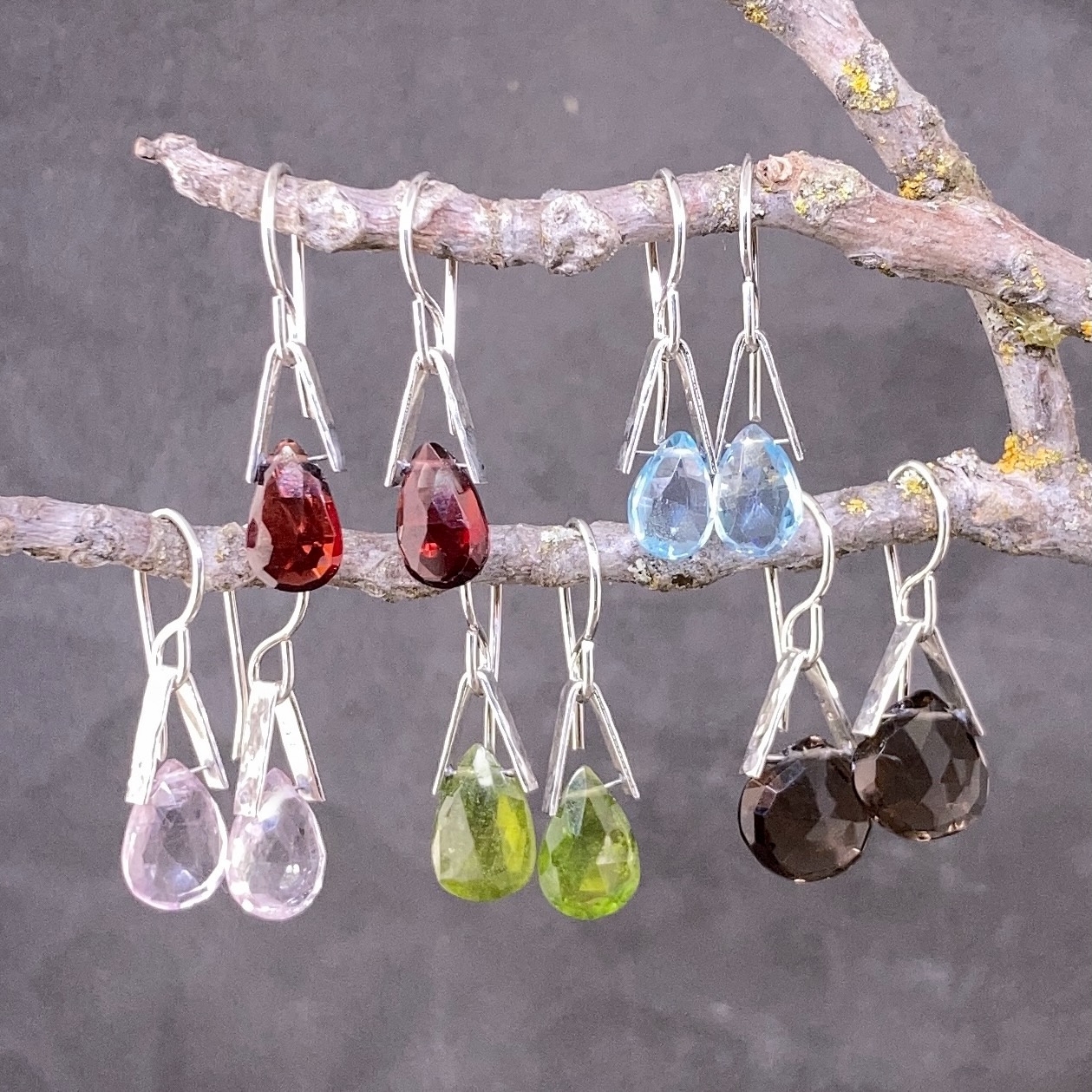 gemstones earrings - V bail - Argentium silver - small - Image 9