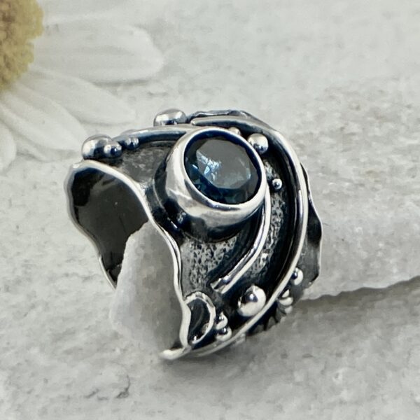 London Blue Topaz Ring – Size 7 – Argentium Silver Water Design – 2 Carat - Image 3
