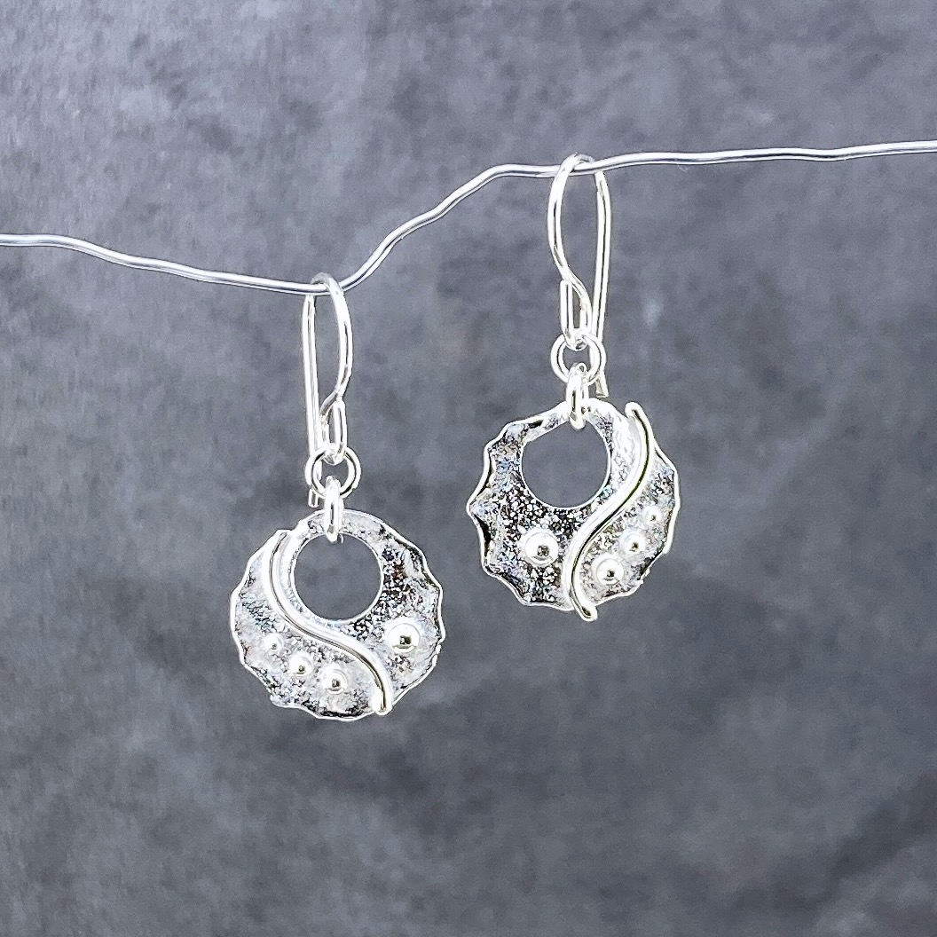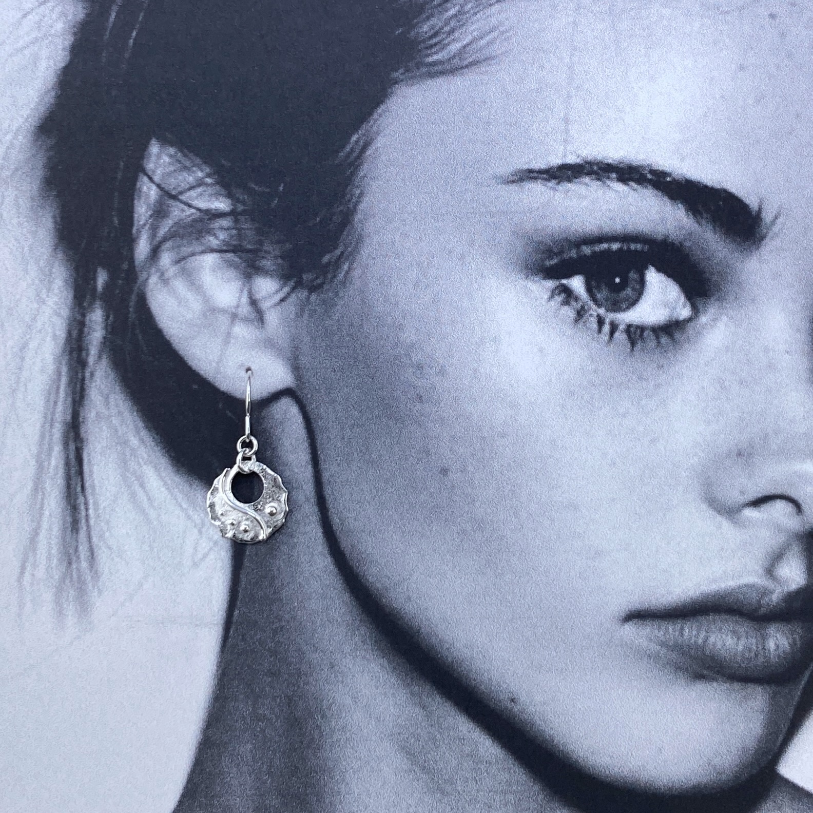 Earrings are 3.0 cm long by 1.6 cm wide. They weigh 2.8 grams. The smallest size of these circles.