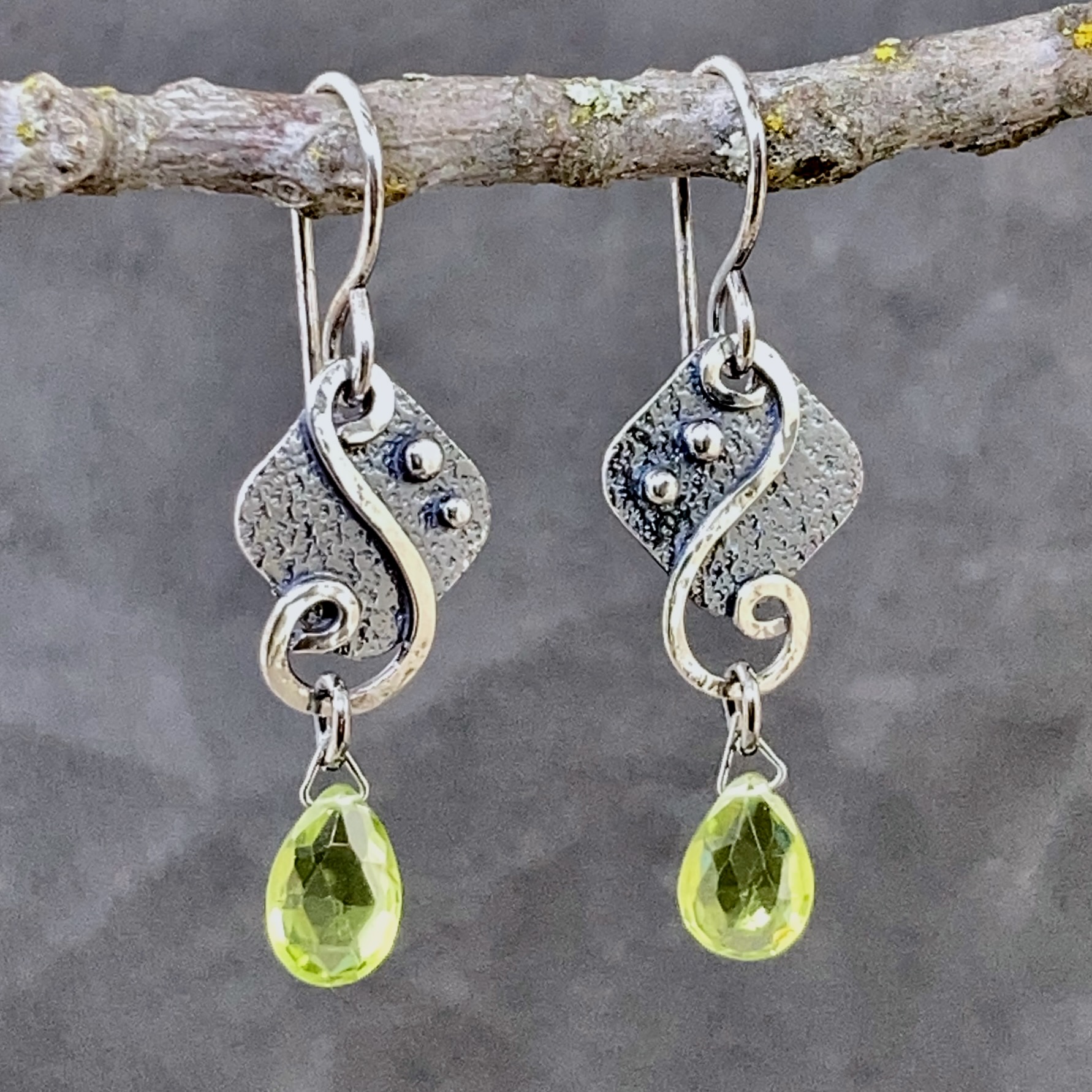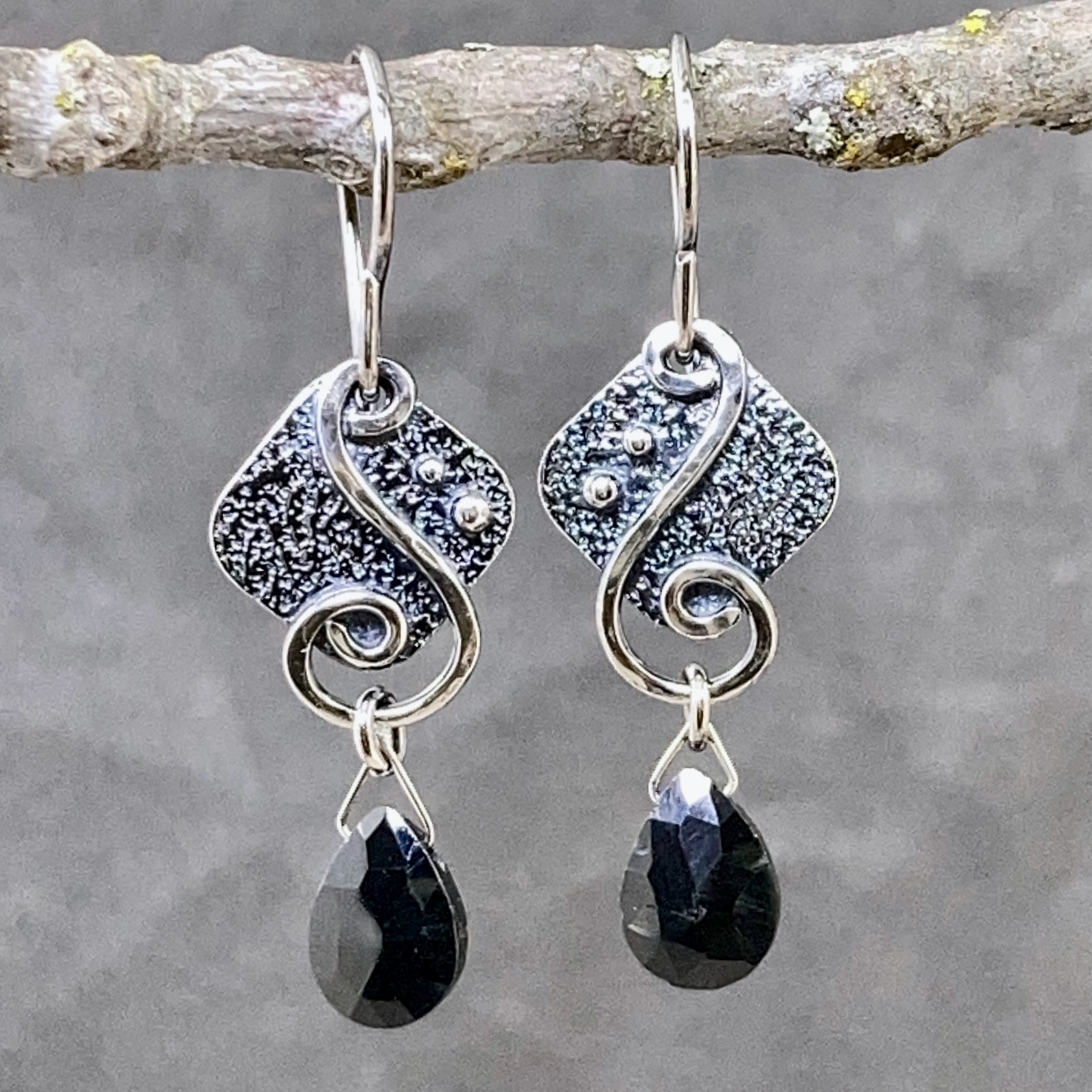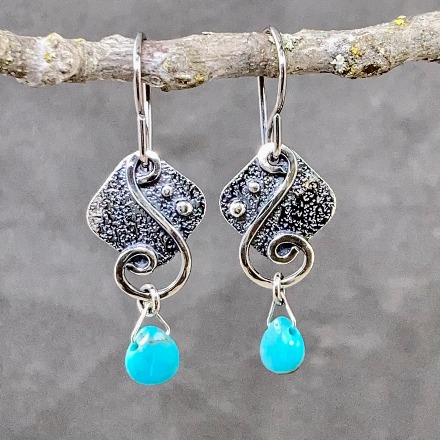 Water design earrings made with solid Argentium silver – with an antique finish