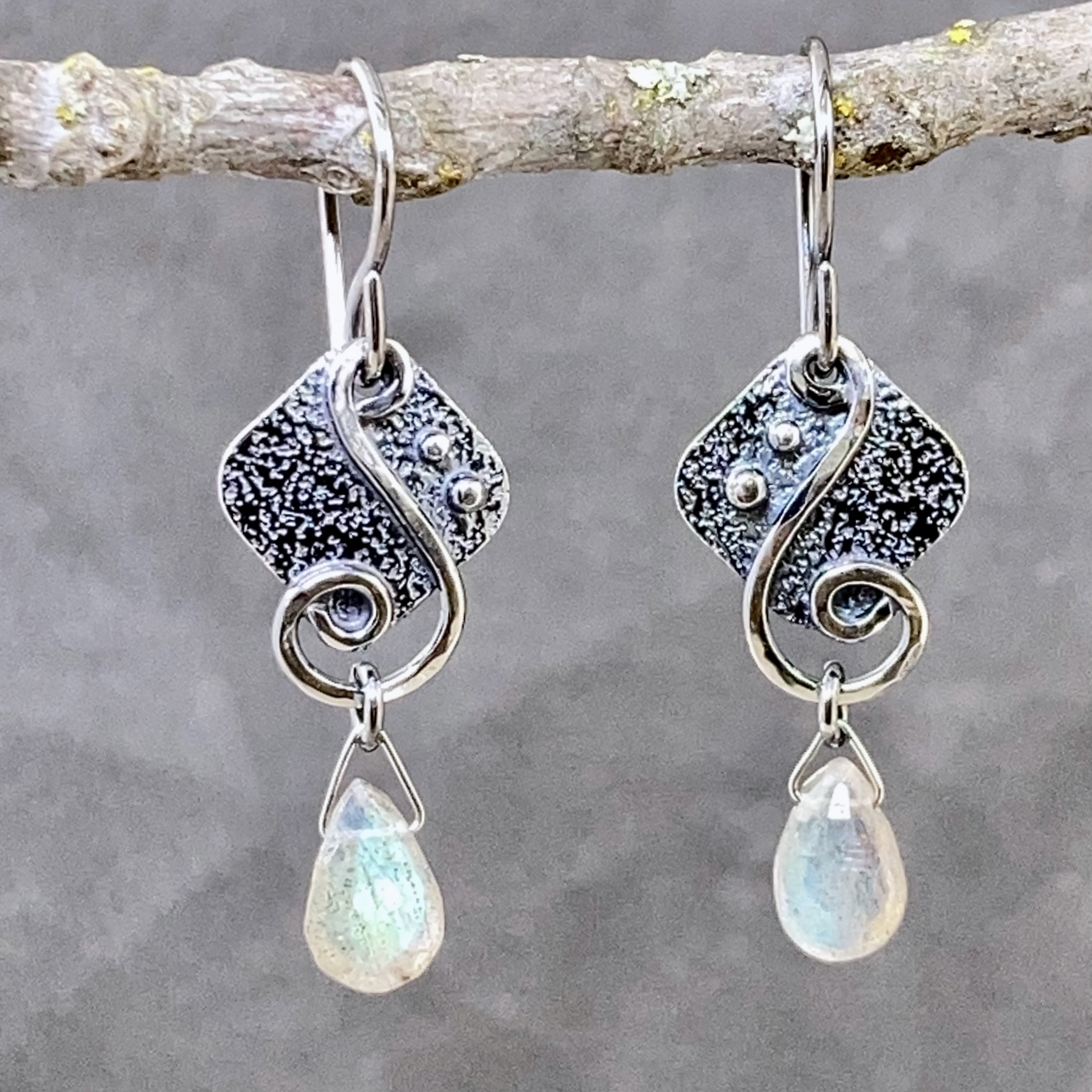 gemstone earrings - diamond waves - antique Argentium silver - small - Image 6