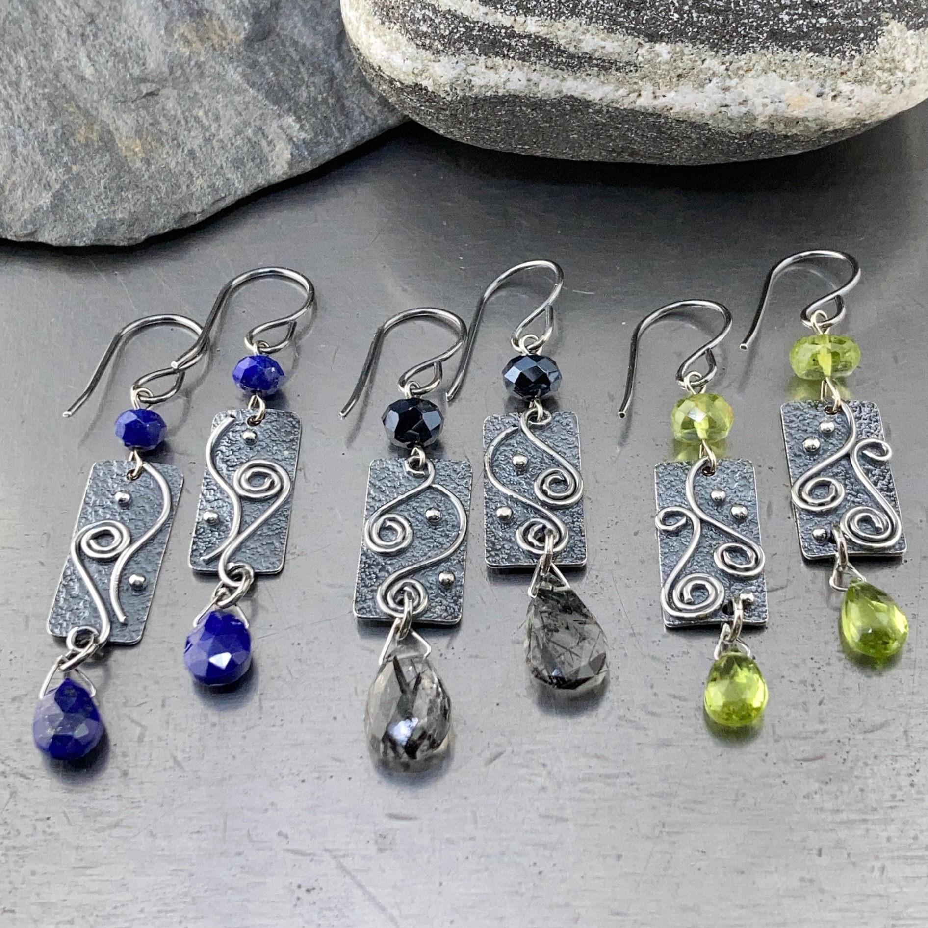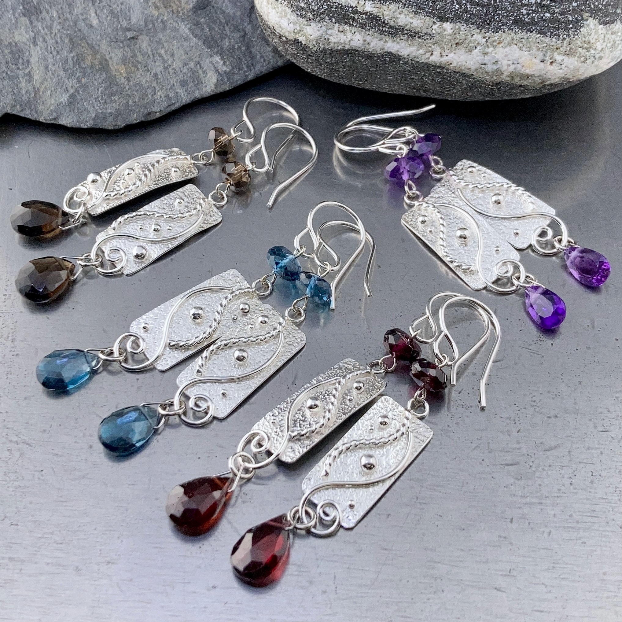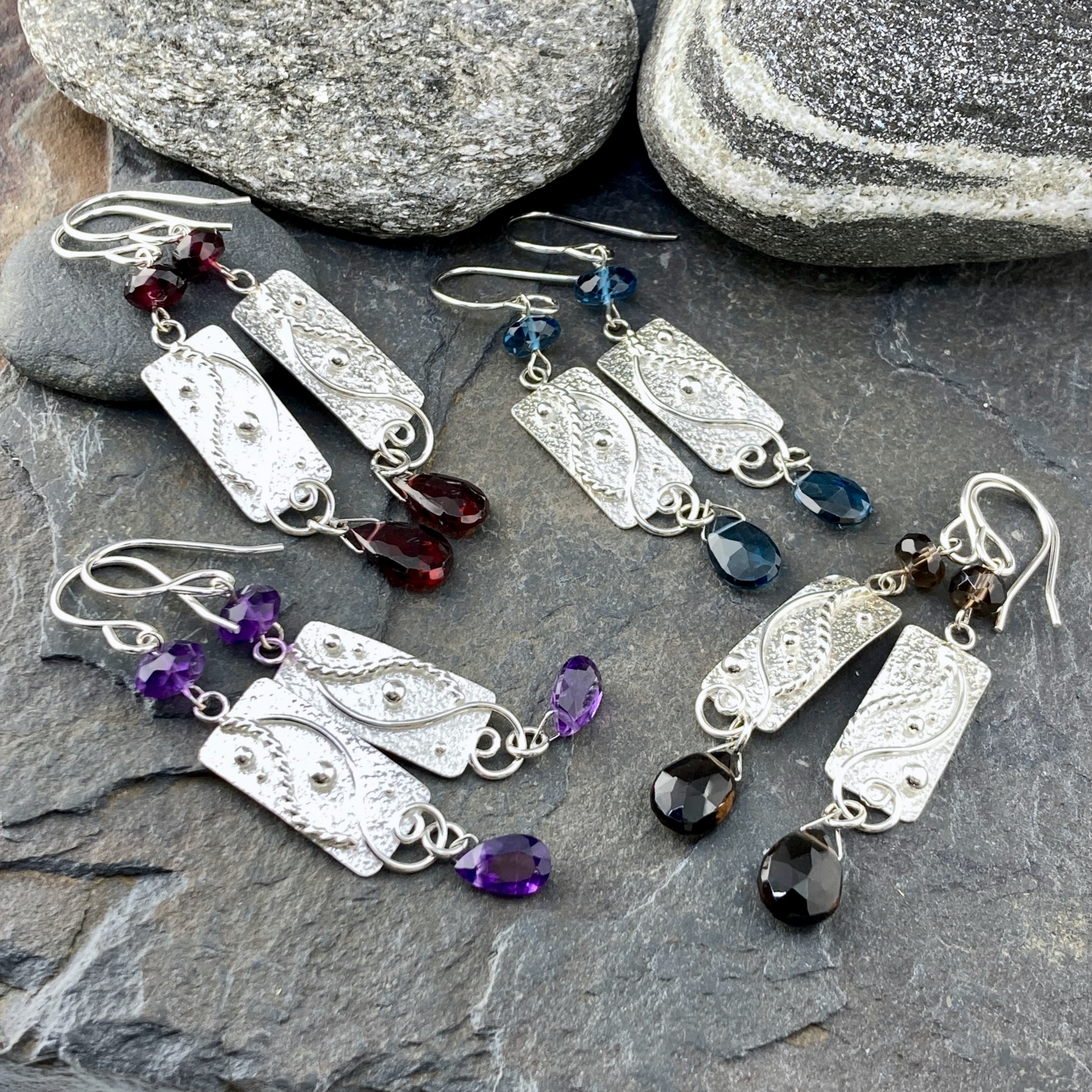 gemstone earrings - rectangle waves - antique Argentium silver - Image 11