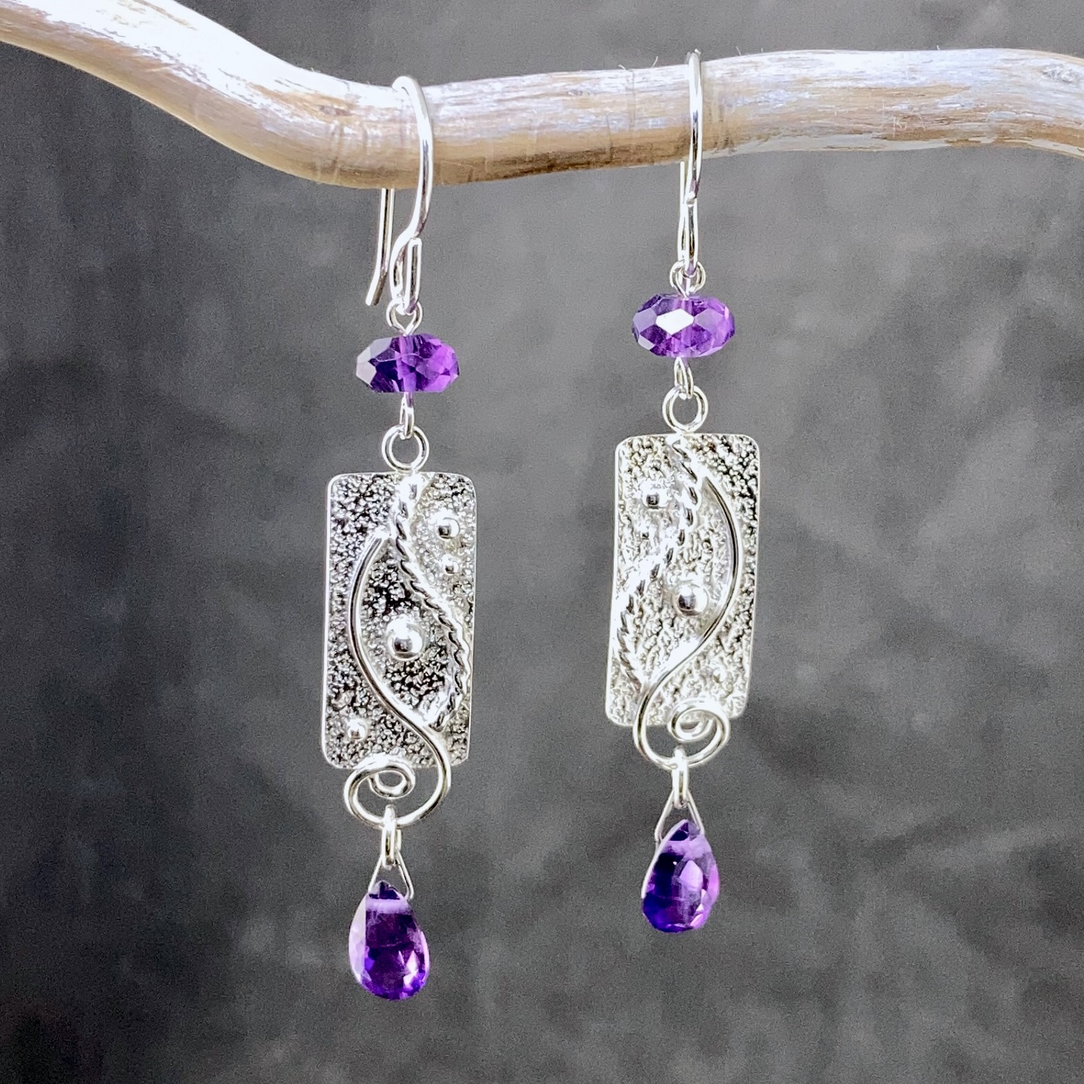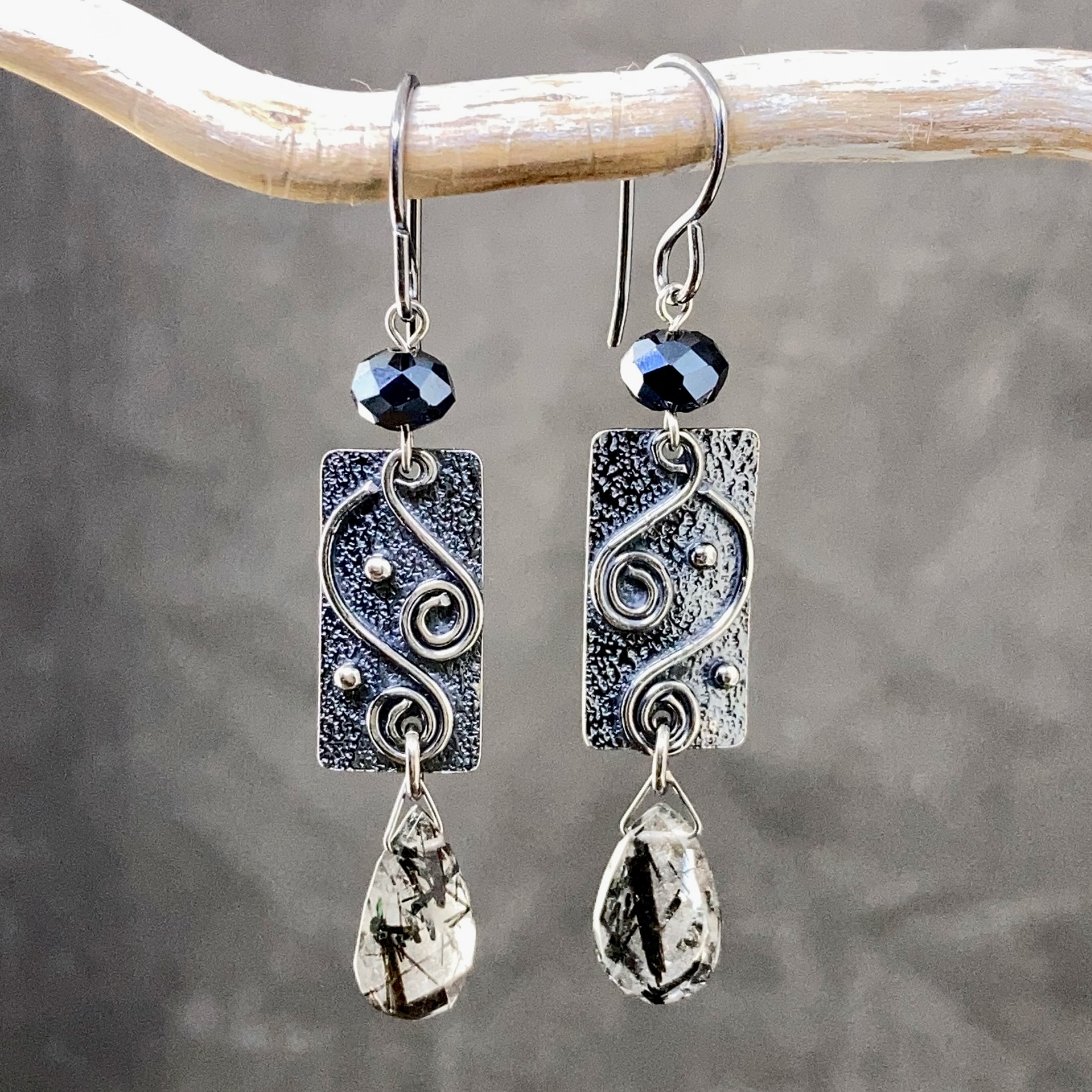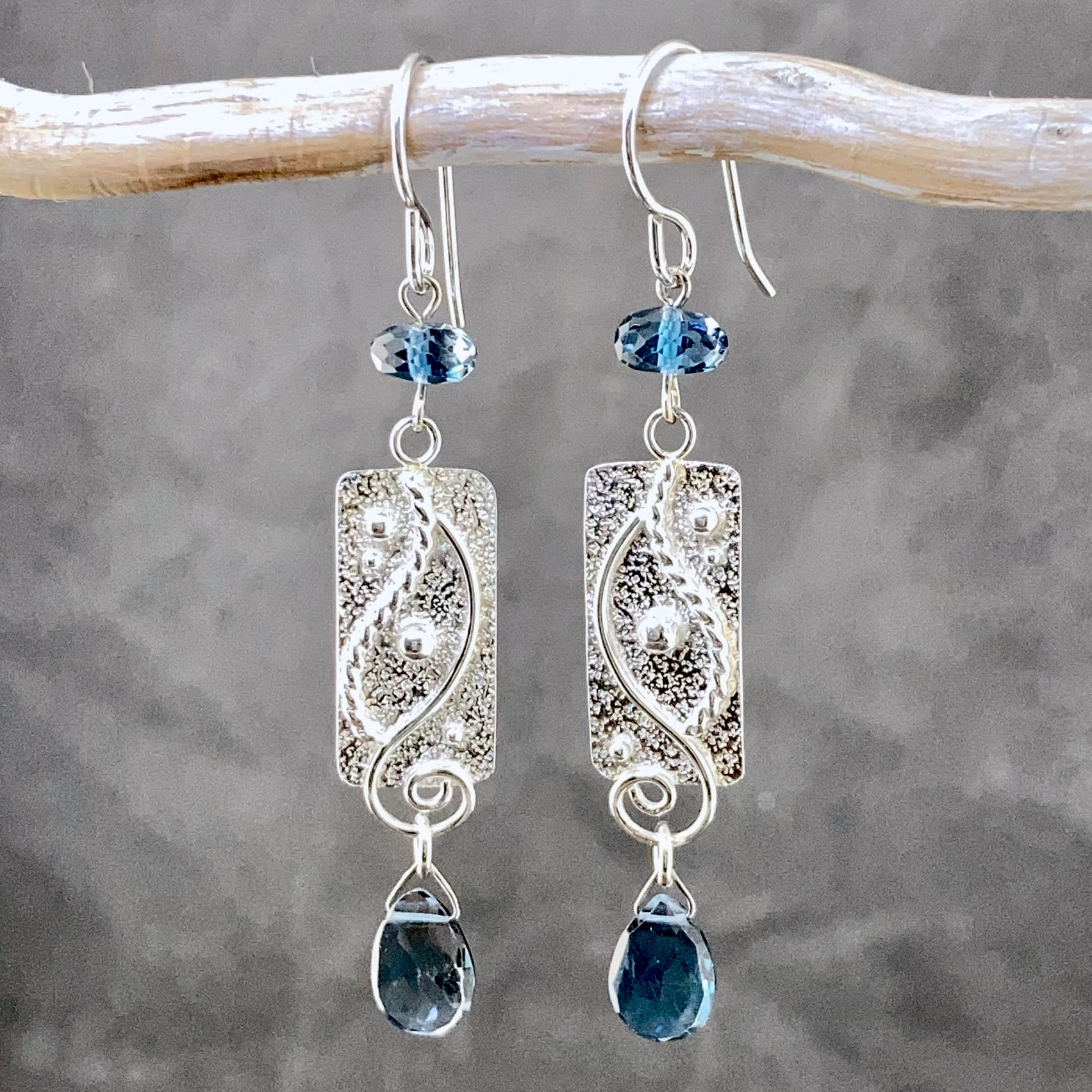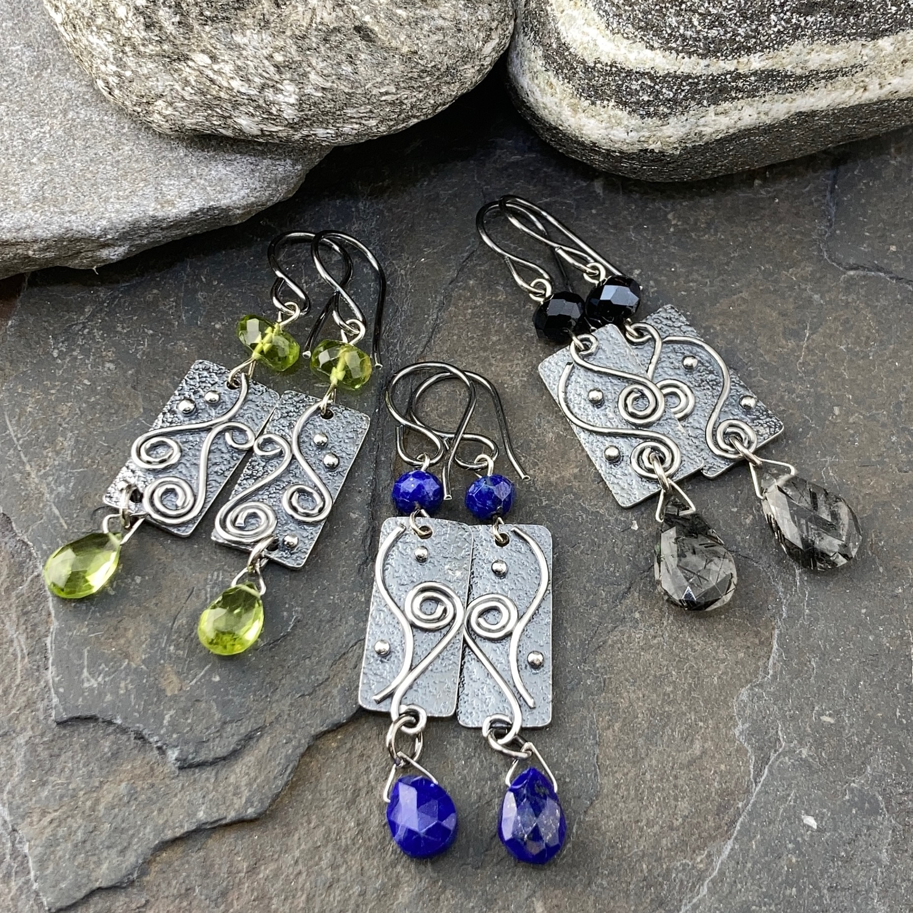 gemstone earrings - rectangle waves - antique Argentium silver - Image 11