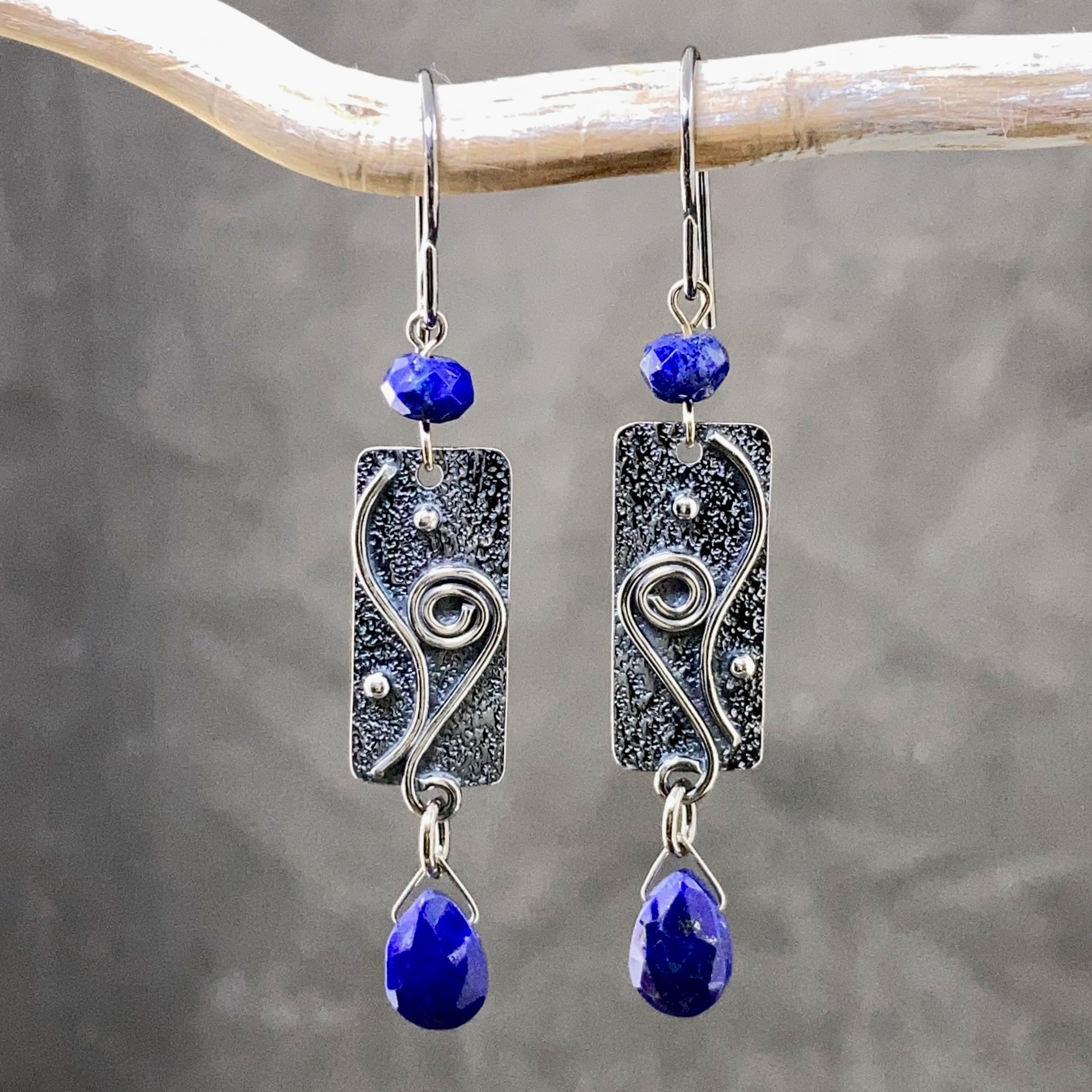 gemstone earrings - rectangle waves - antique Argentium silver - Image 13