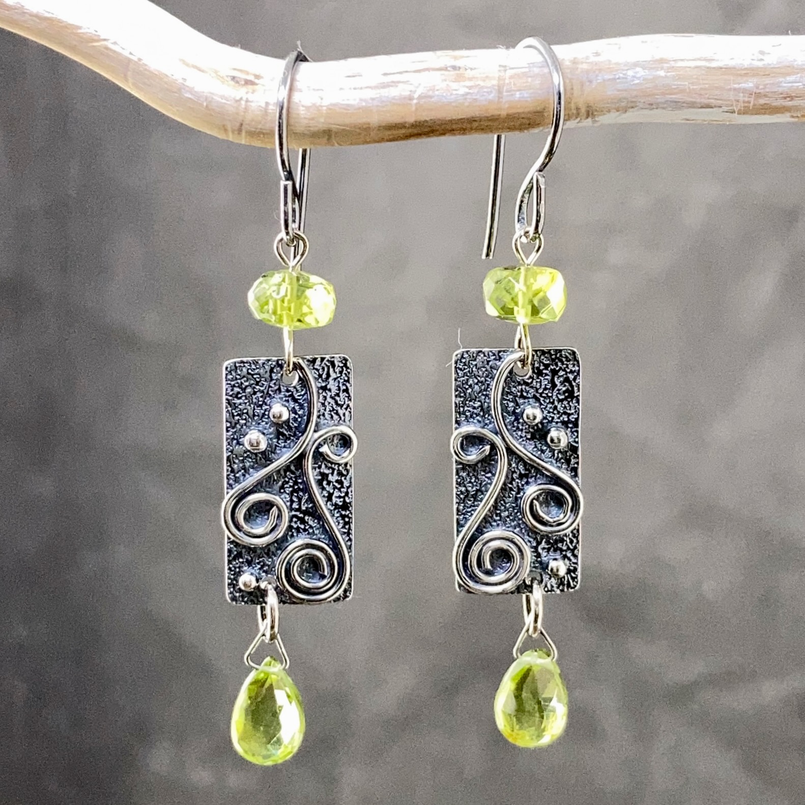 Peridot on a handmade Argentium silver rectangle – with an antique finish