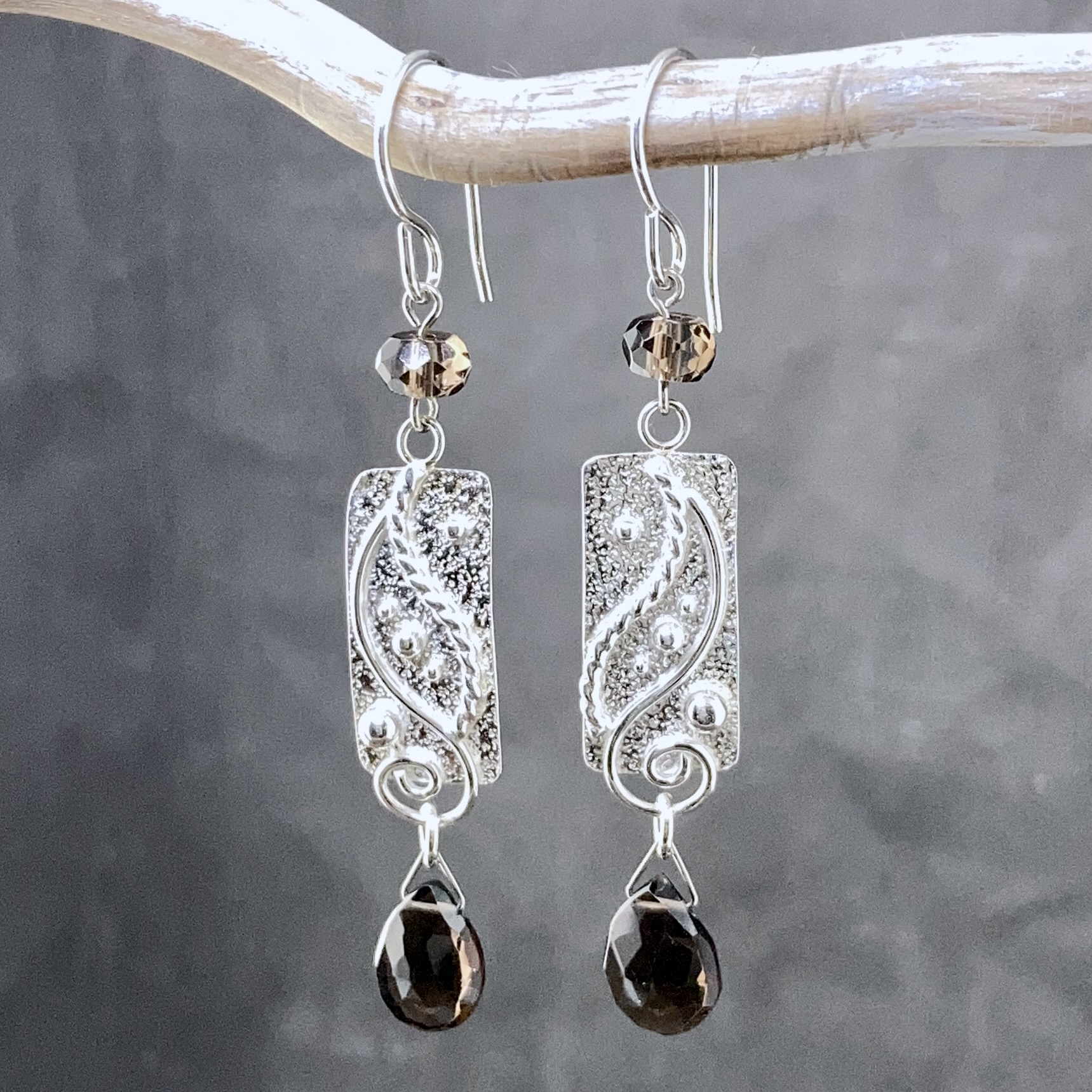 gemstone earrings - rectangle waves - antique Argentium silver - Image 10