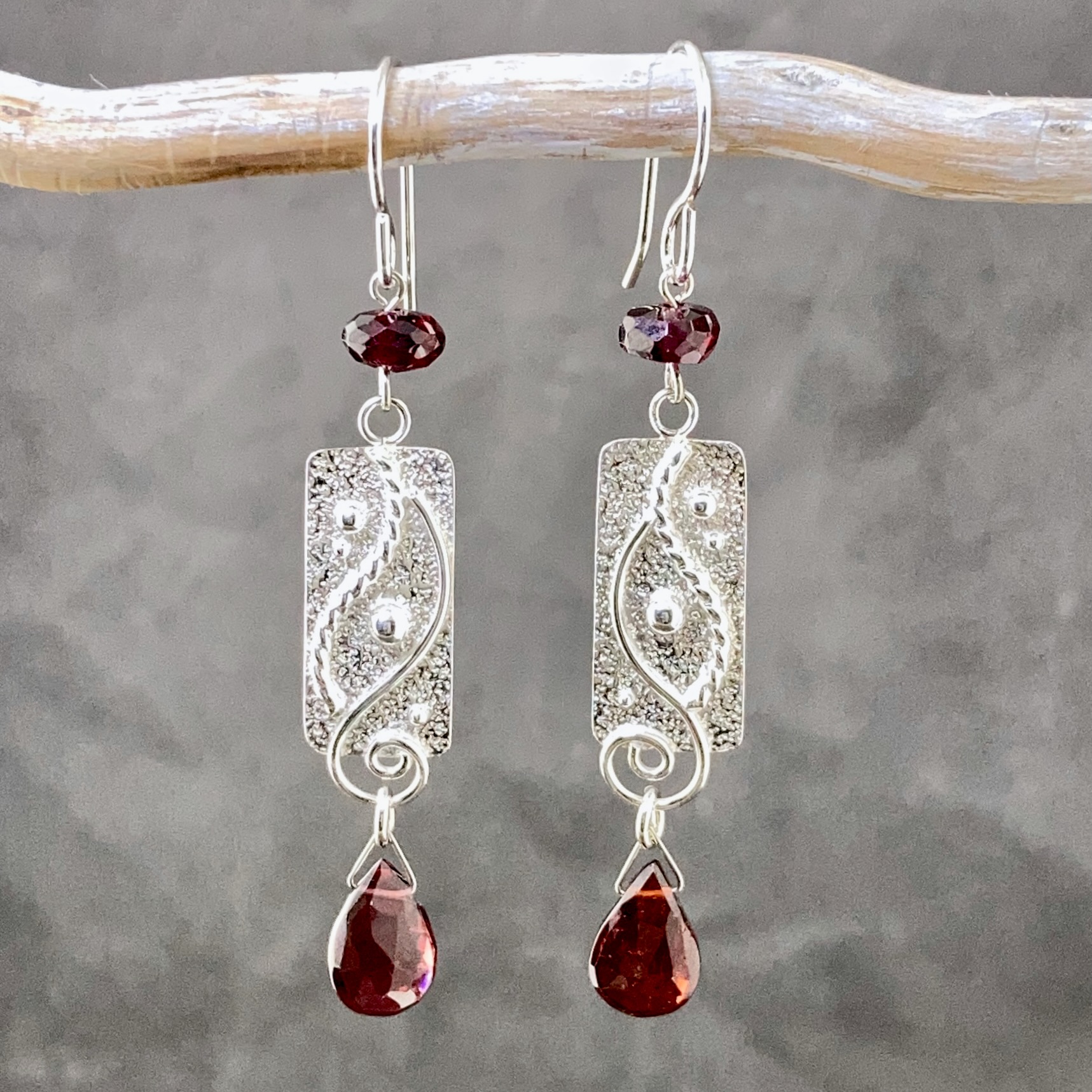 gemstone earrings - rectangle waves - antique Argentium silver - Image 9