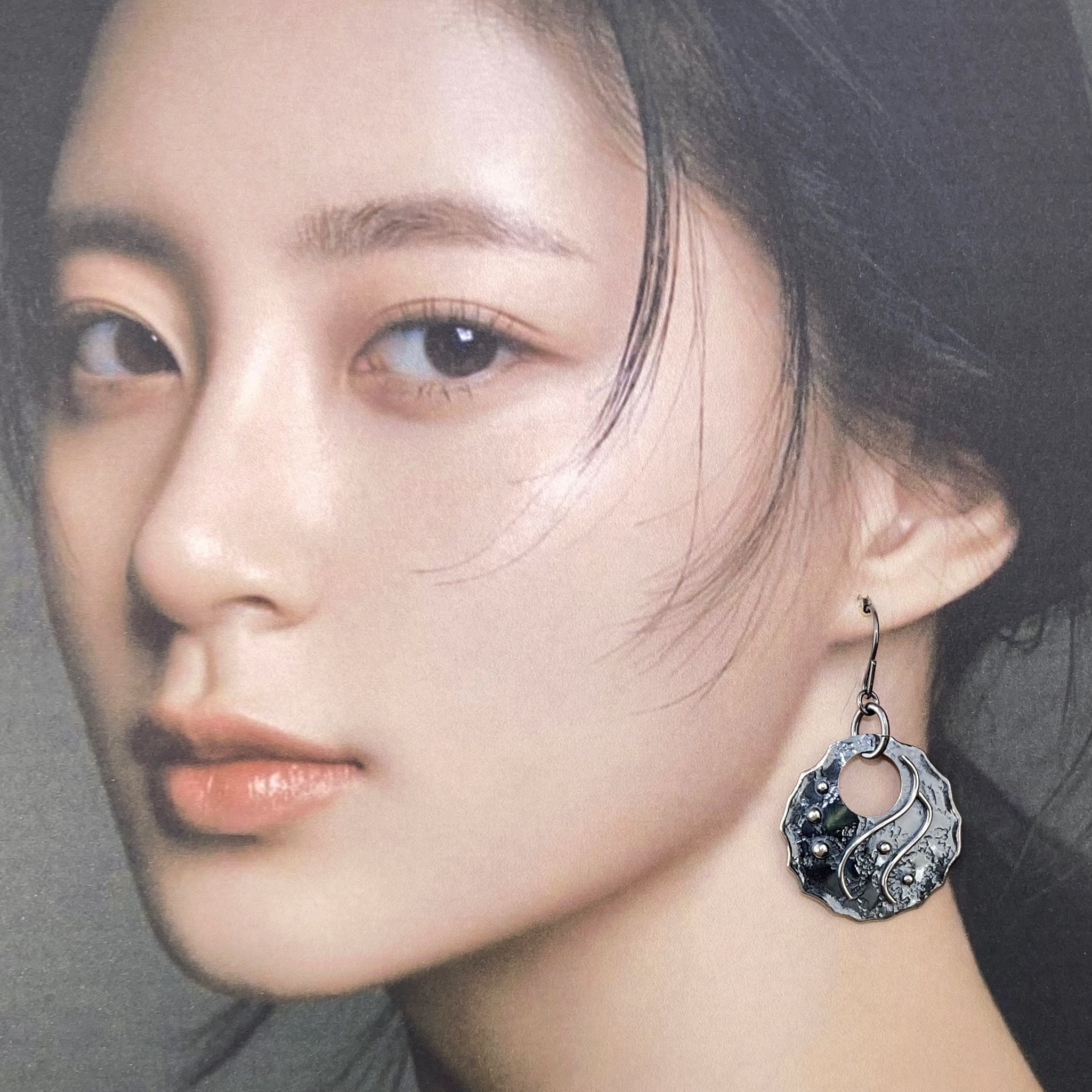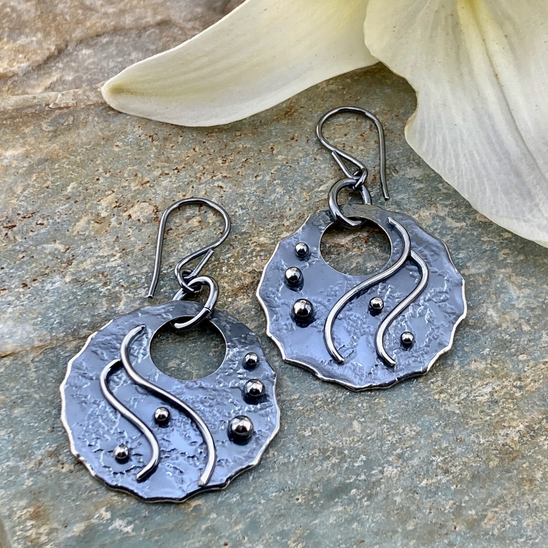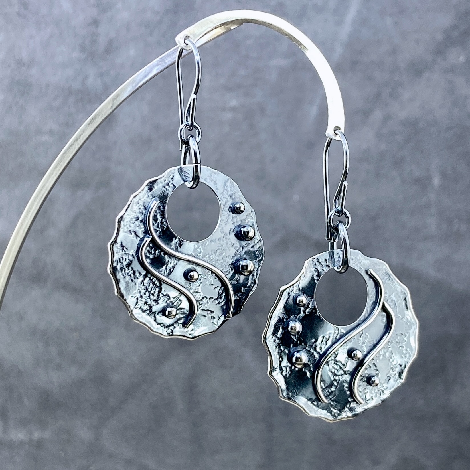 waves earrings - hollow circle - antique Argentium silver - Image 2