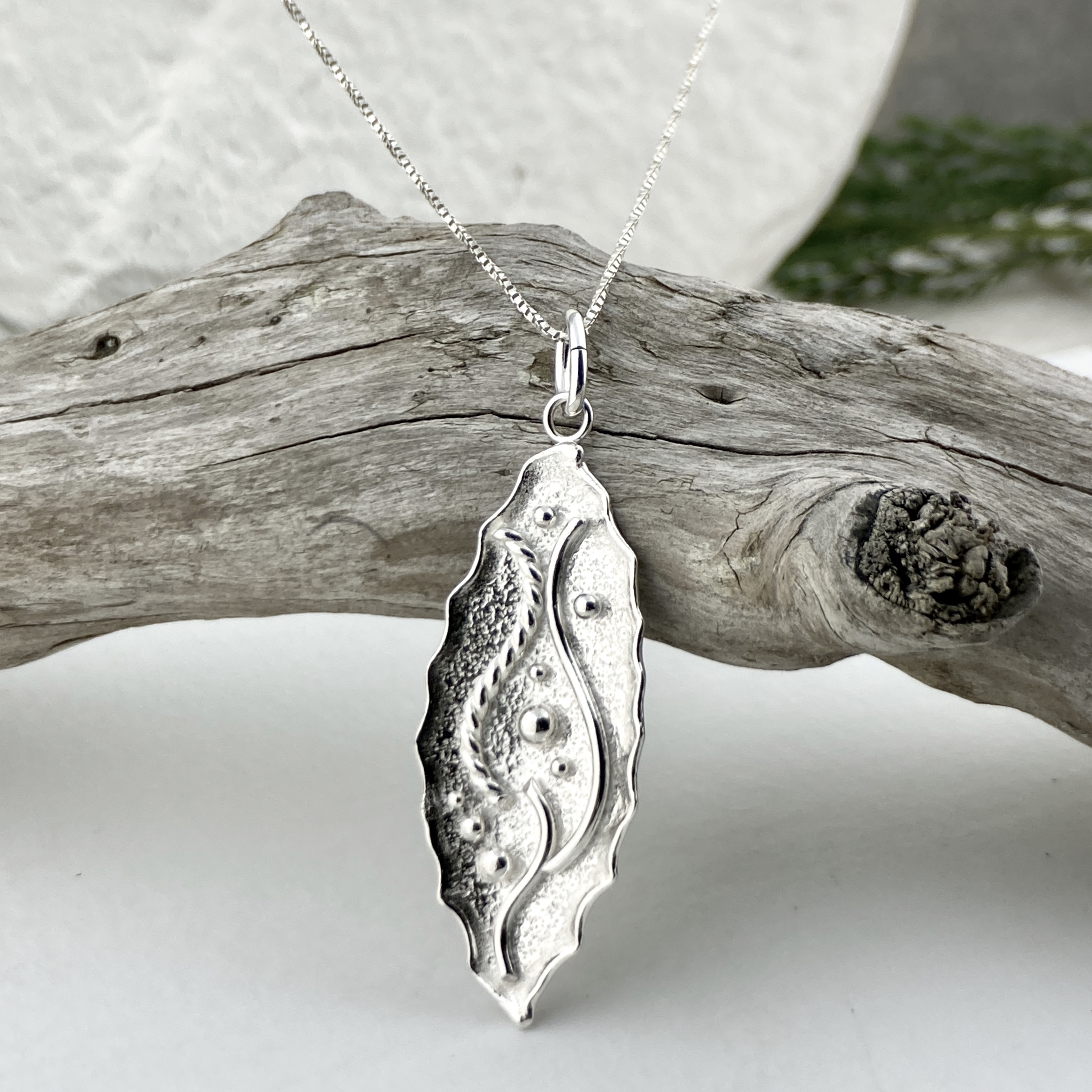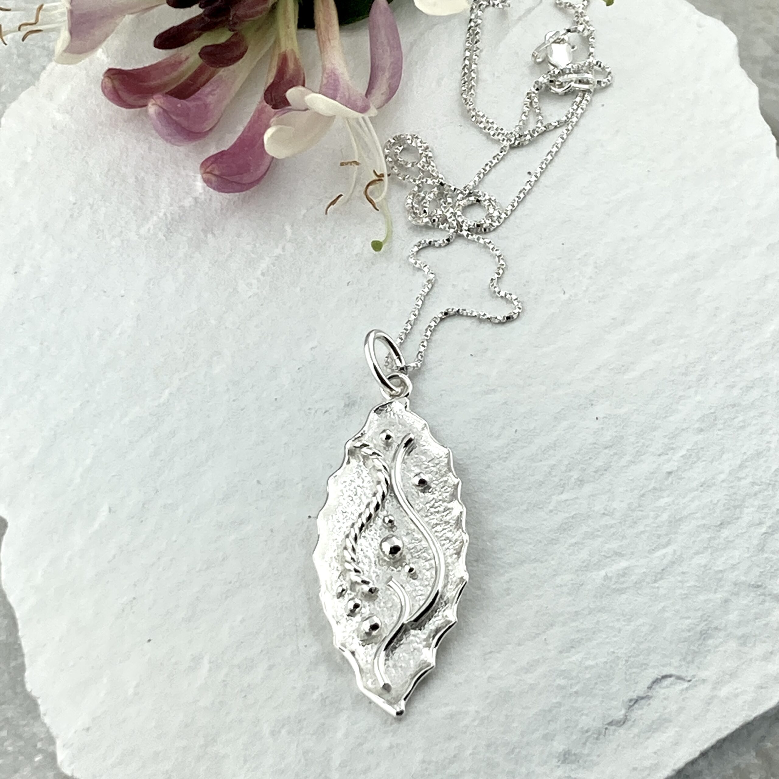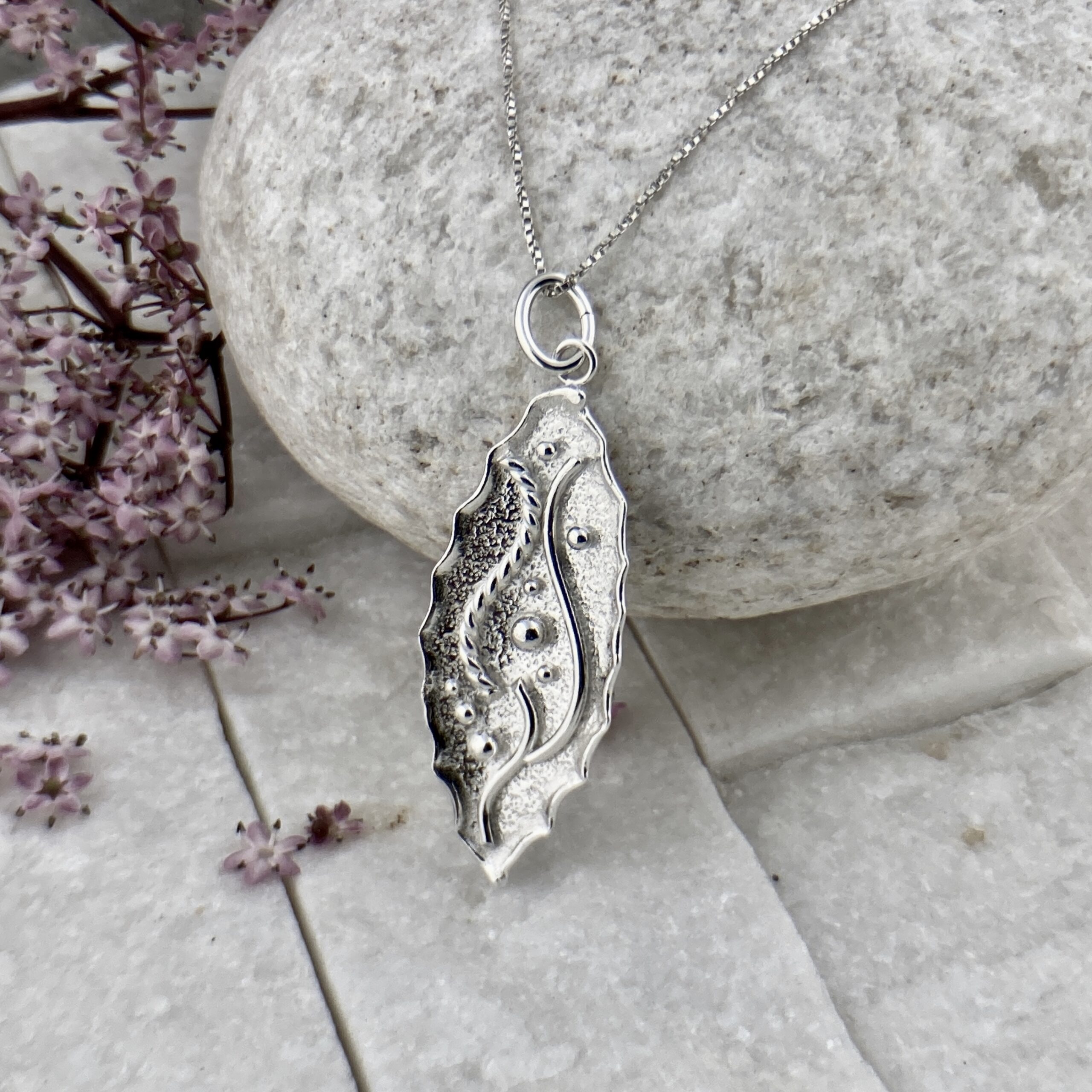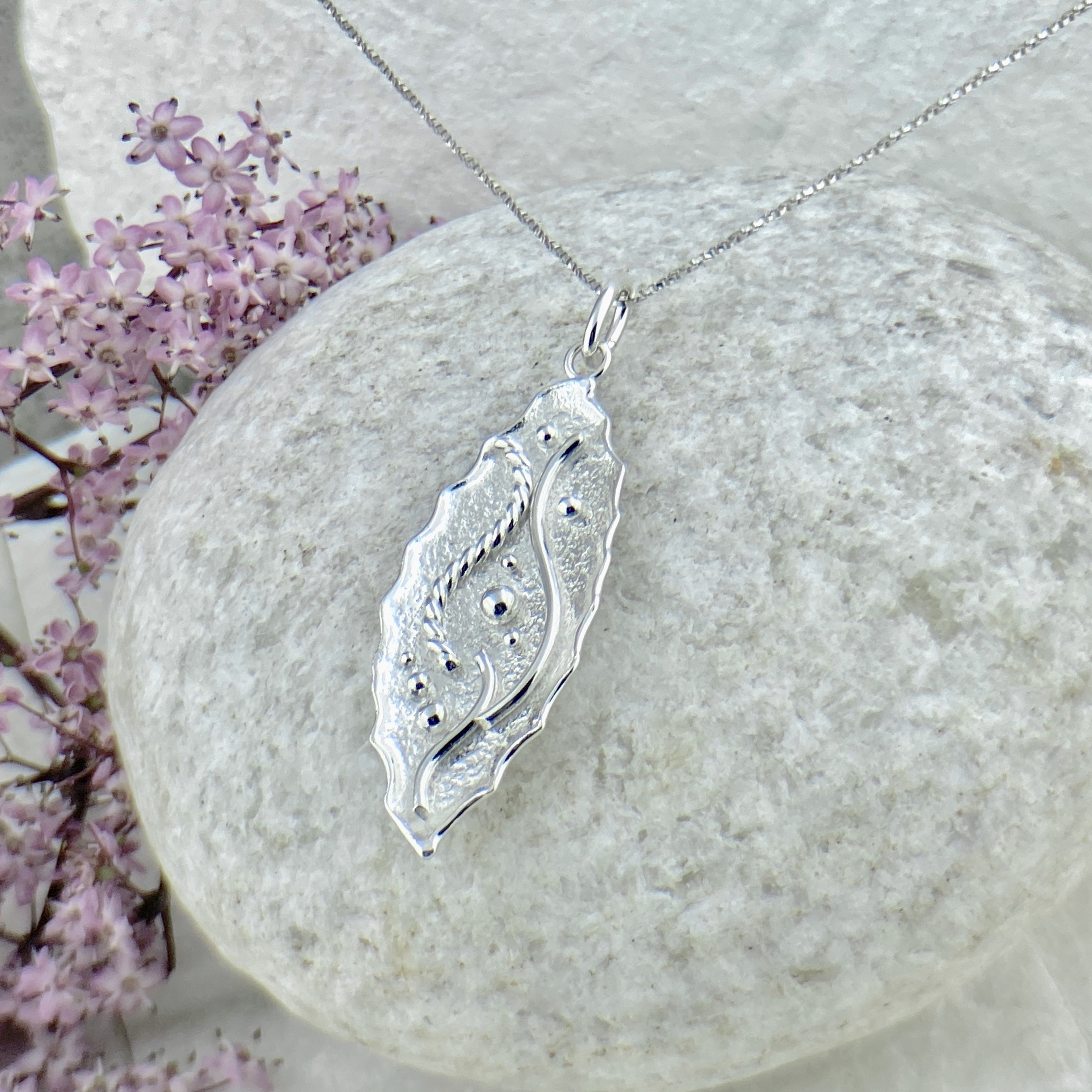 A shiny Argentium silver pendant – in our water design group.