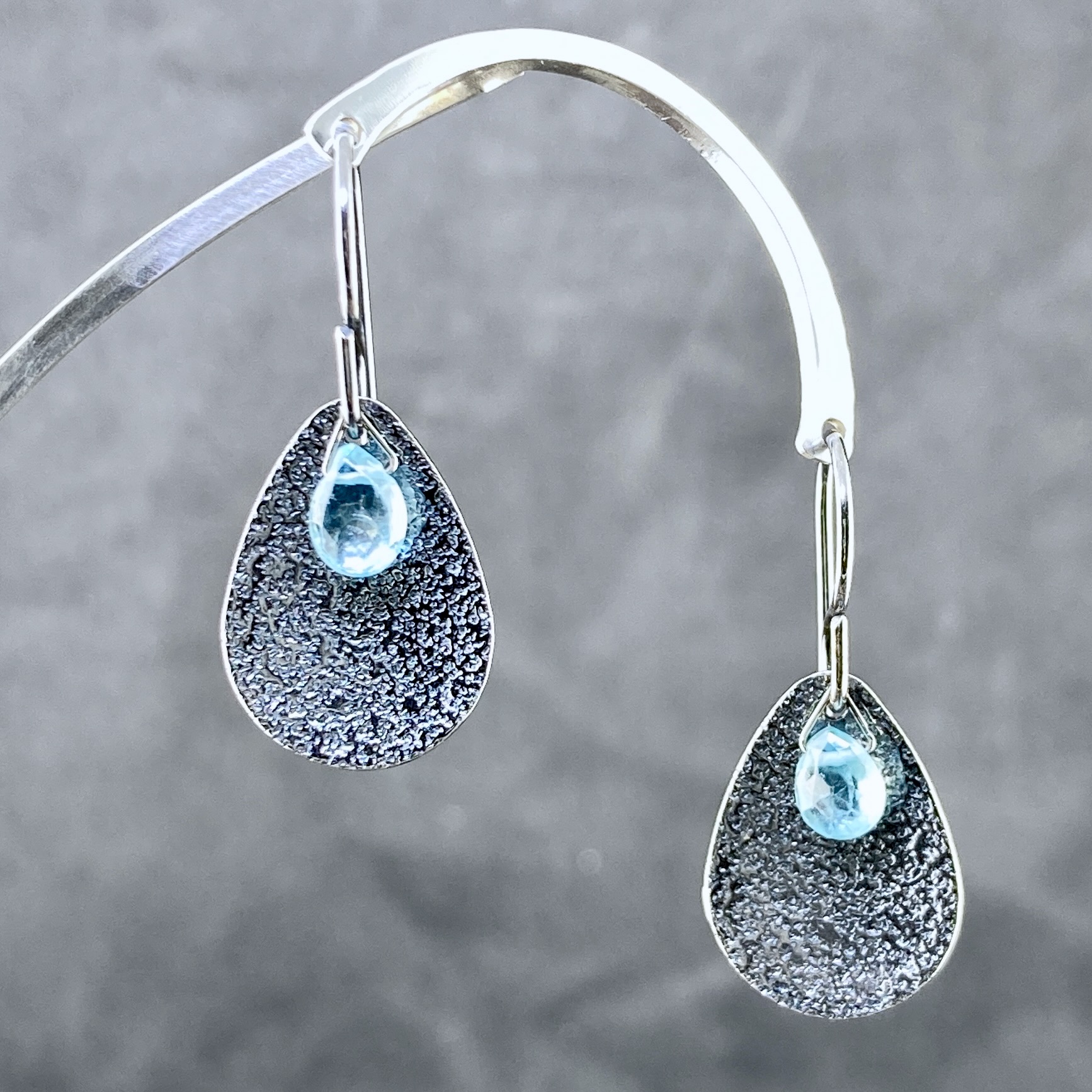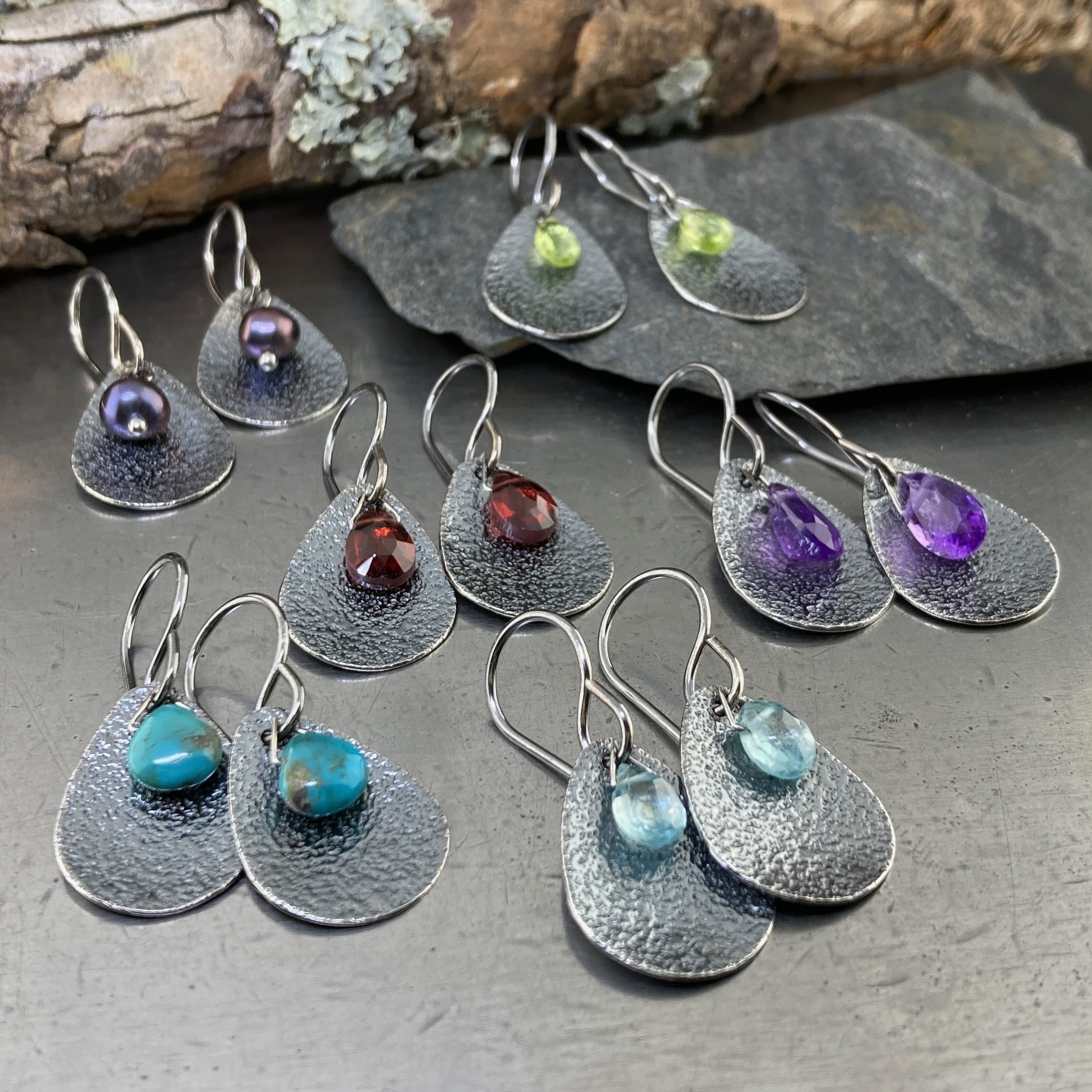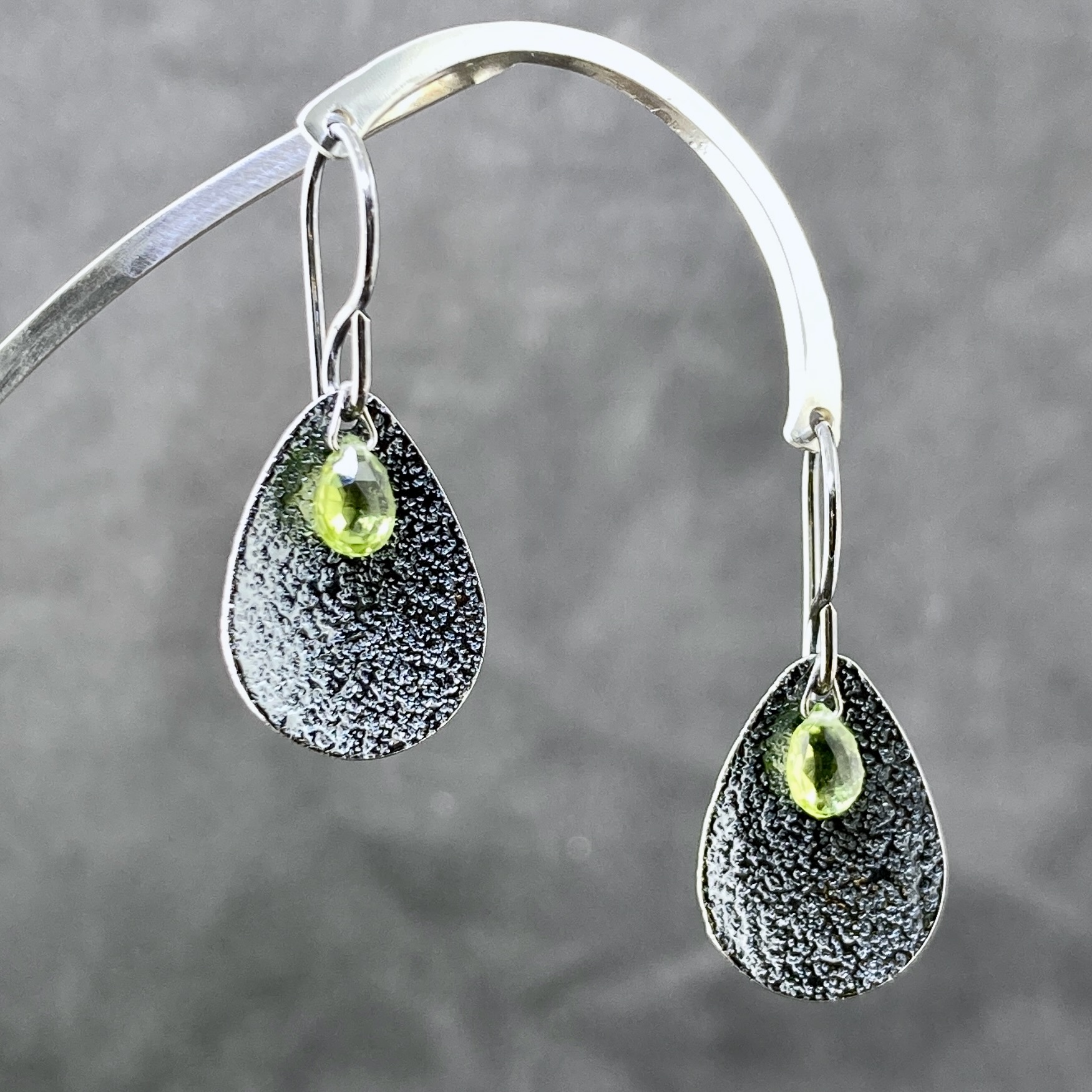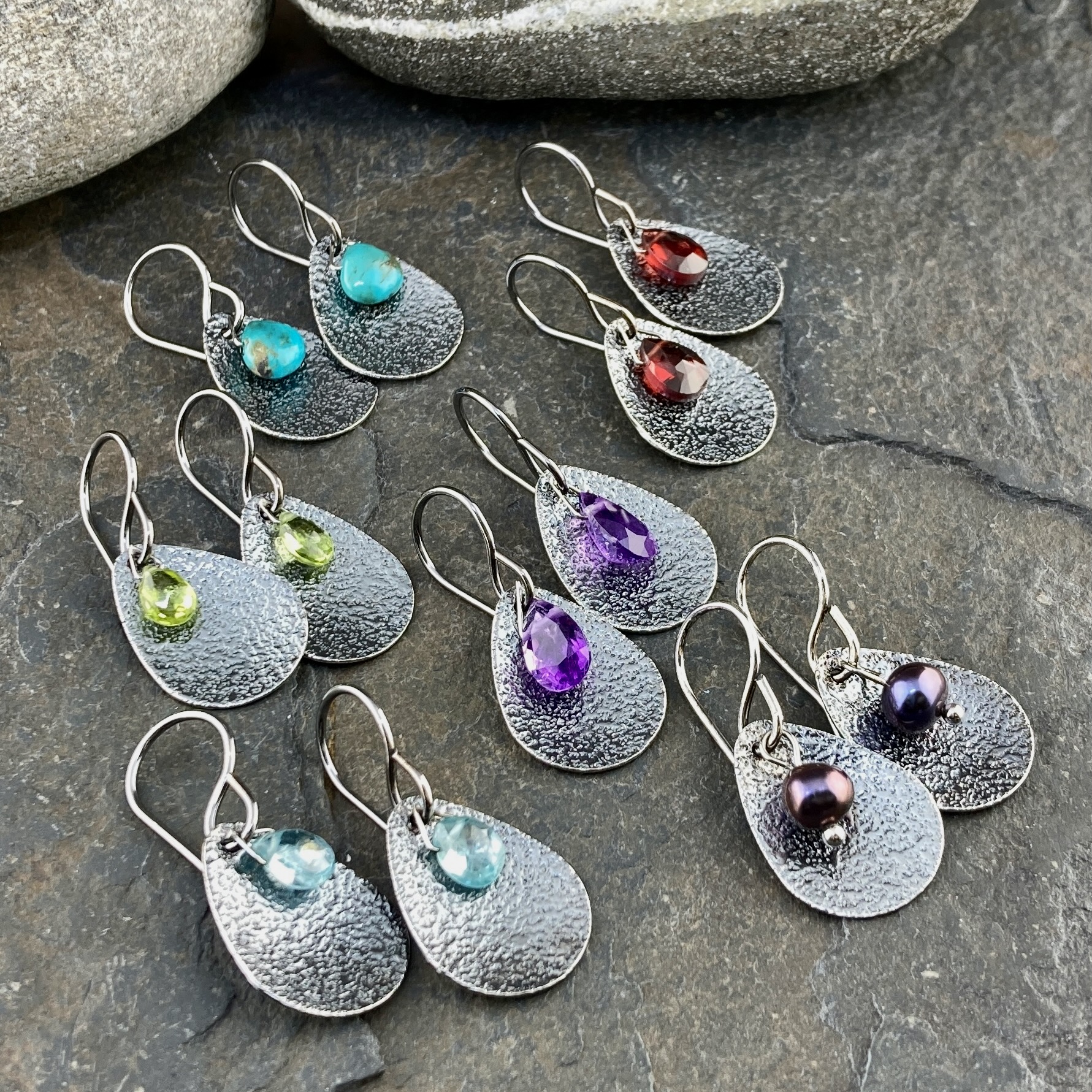 gemstone earrings – tiny teardrop – antique Argentium silver