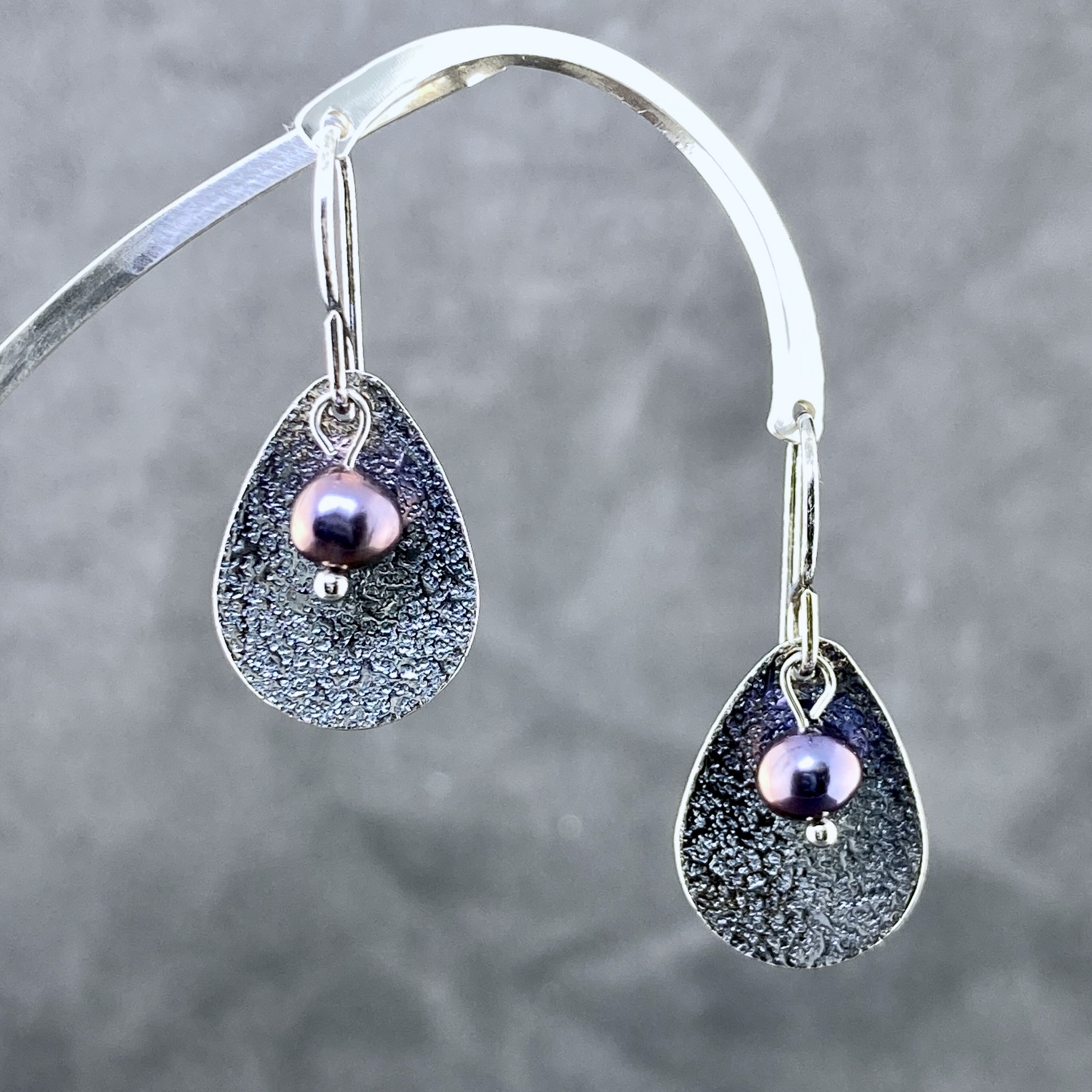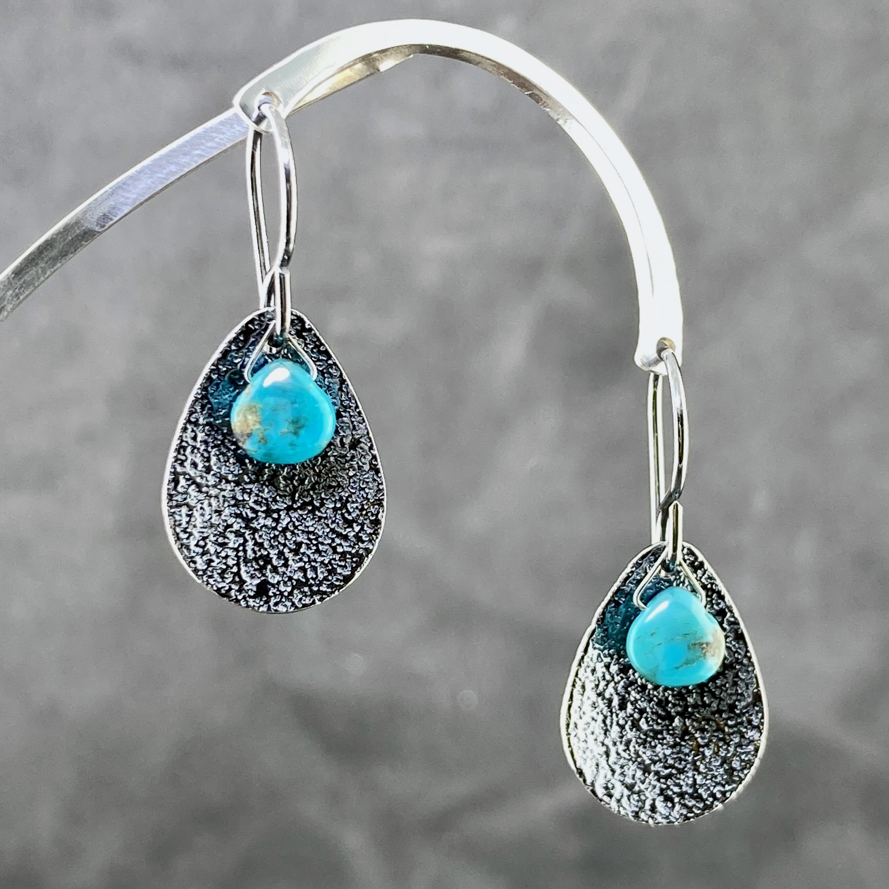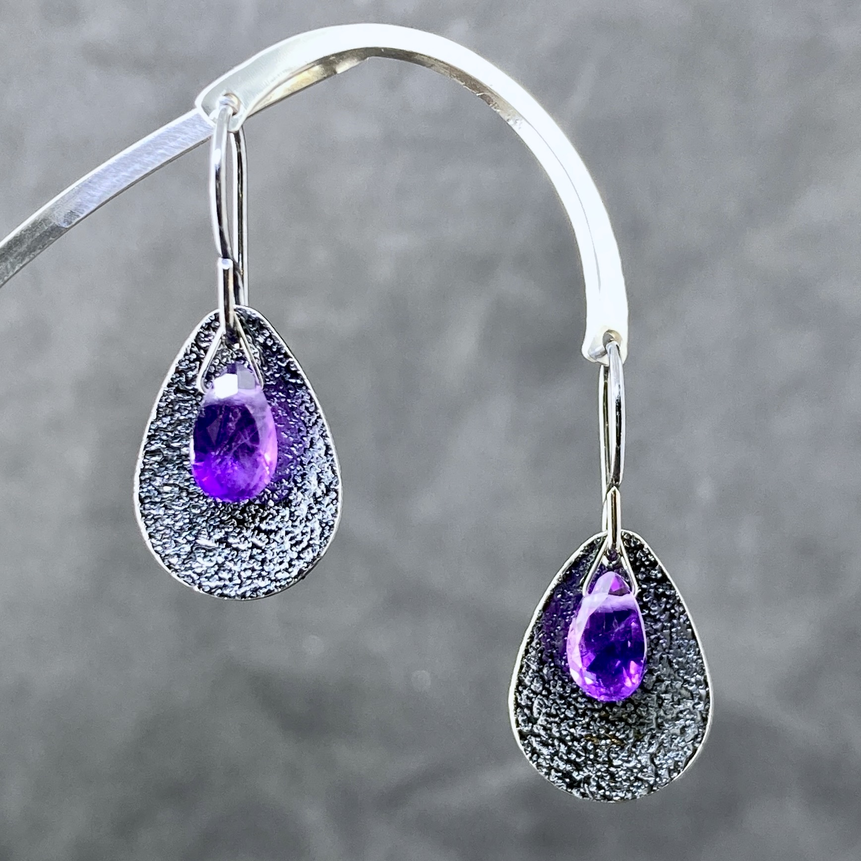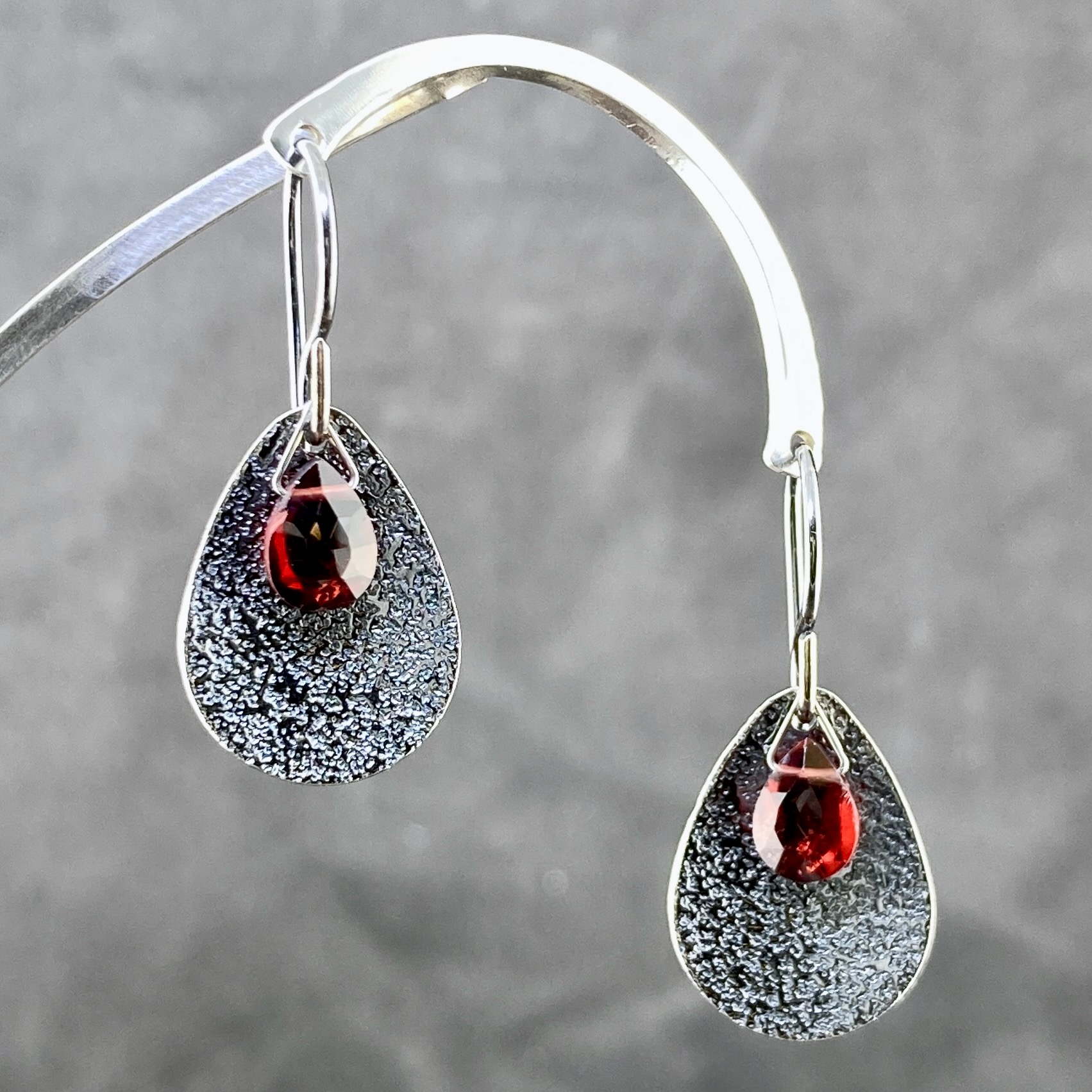 gemstone earrings – tiny teardrop – antique Argentium silver