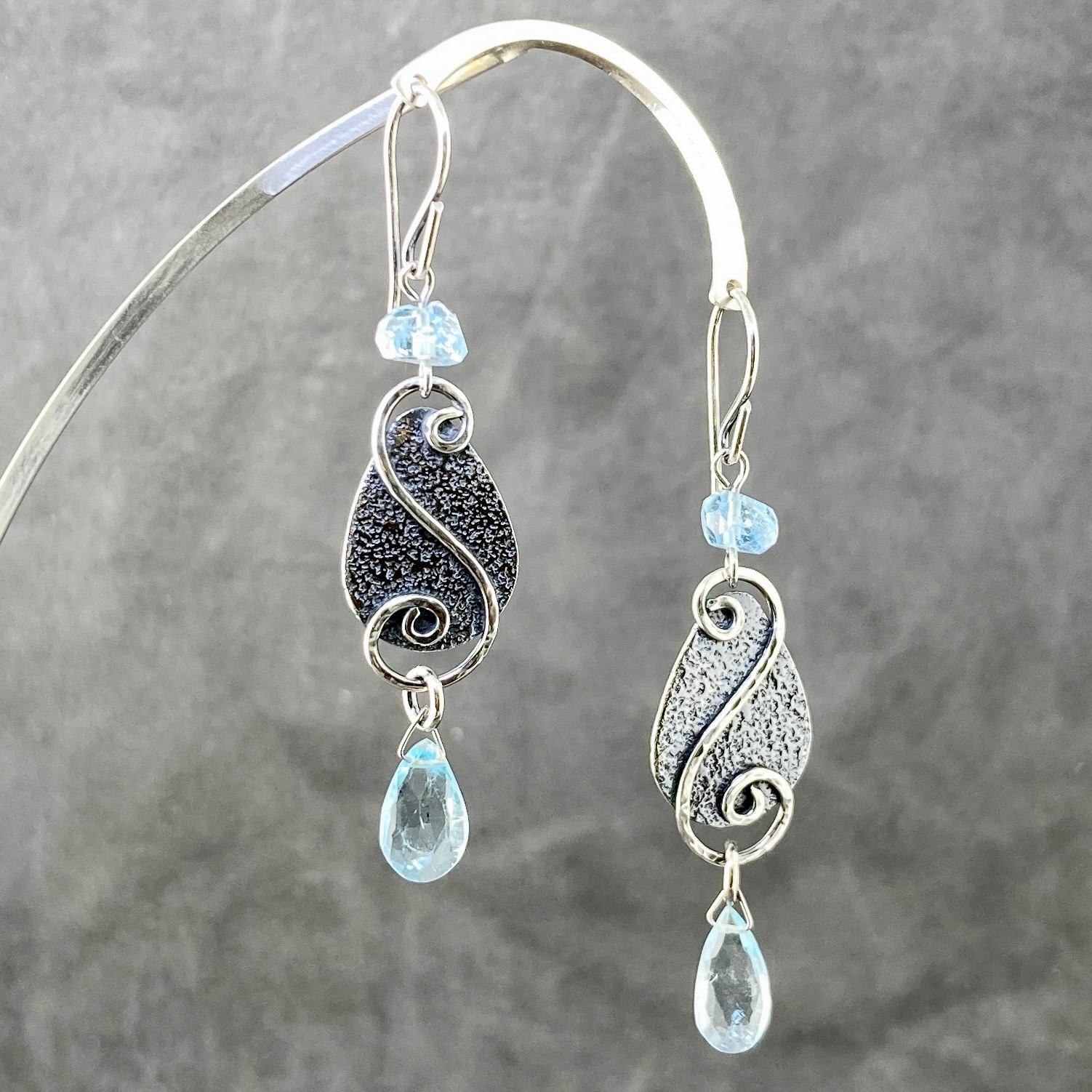 gemstone earrings - teardrop waves - Argentium silver - Image 5