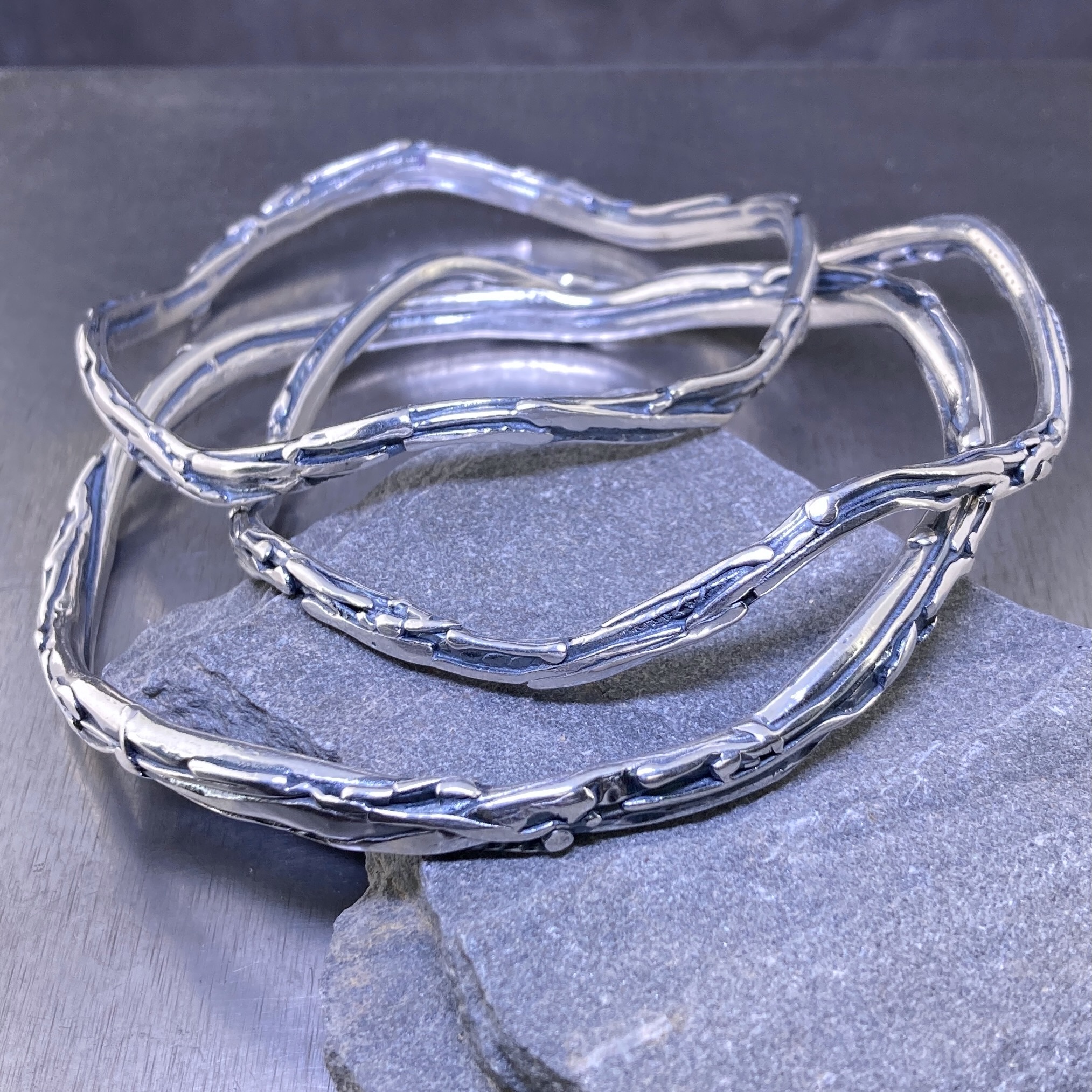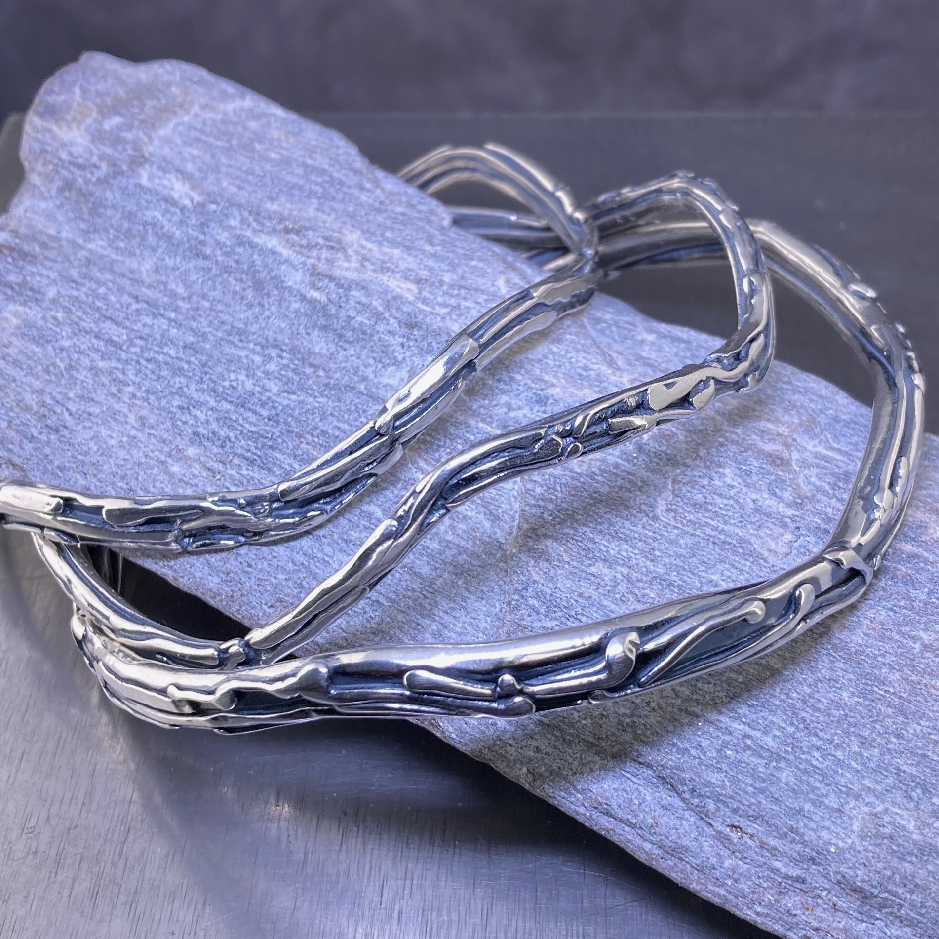 Wavy Bark Bangles – Argentium Silver – Antique Finish