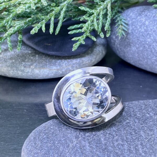 Handmade White Topaz ring in Argentium silver with a bold Buttonhole design and smooth, mirror-polished finish.
