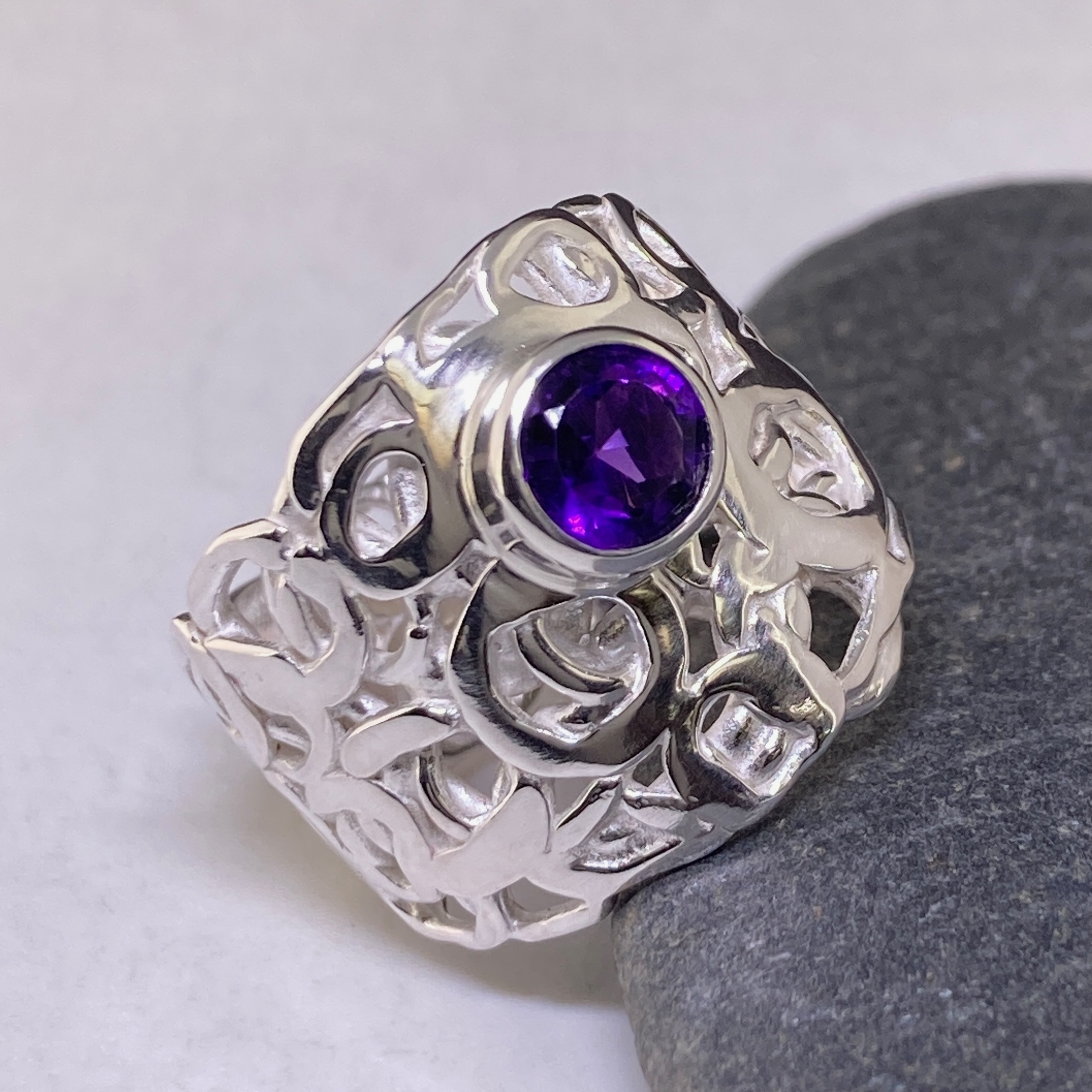 amethyst ring – size 7.5 – pebbles Argentium silver – 1 carat